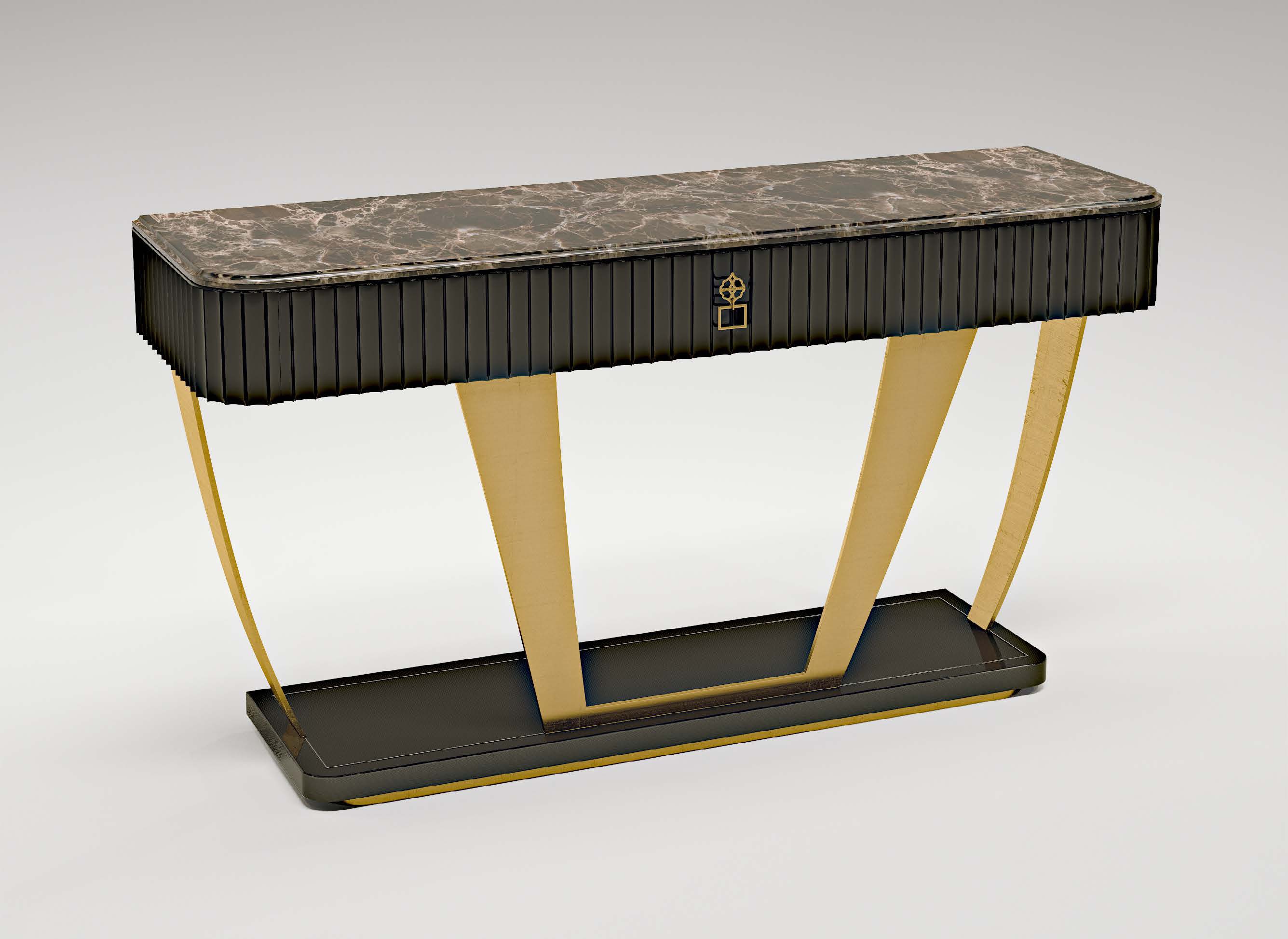 The Swing console from the Italian manufacturer Bruno Zampa. The Avantgarde Collection. The model is made from solid wood. Legs are carved, handmade. Finishing - gilding, gloss varnish. Colours in stock.