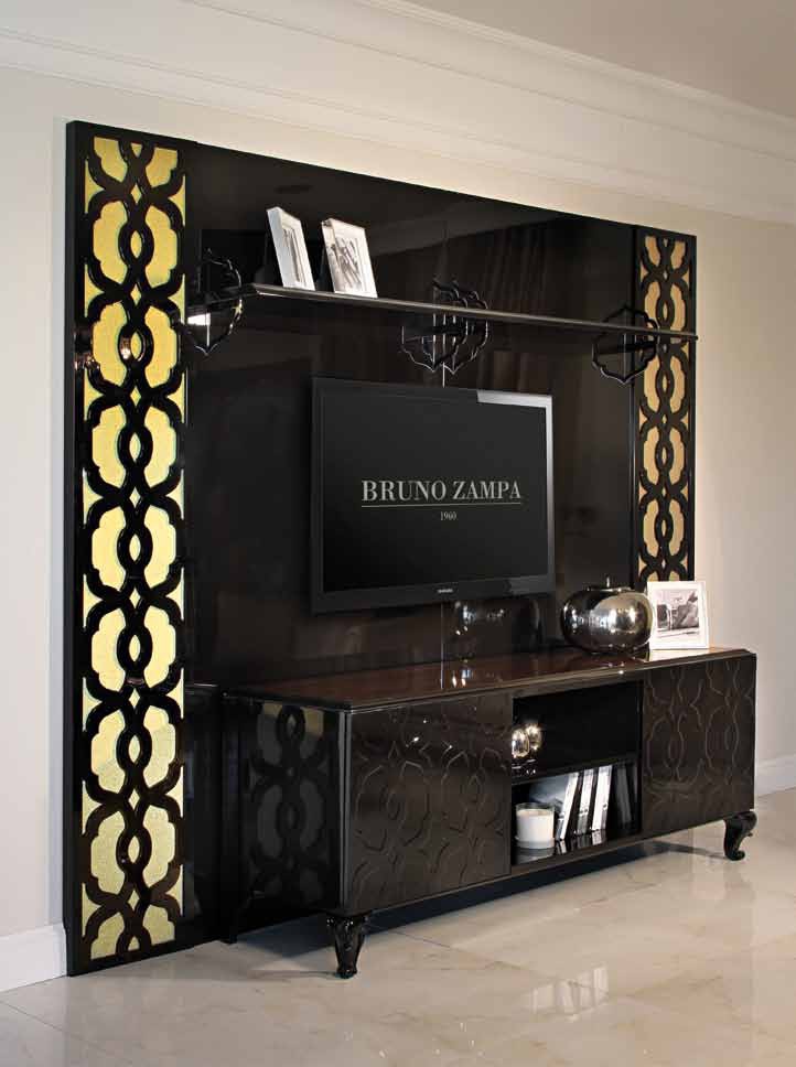 Furniture for TV Club from the Italian manufacturer Bruno Zampa. The Avantgarde Collection. The model is made from solid wood. Carving handmade. Handles from brass alloy. Finish - gloss lacquer. Colours in stock.