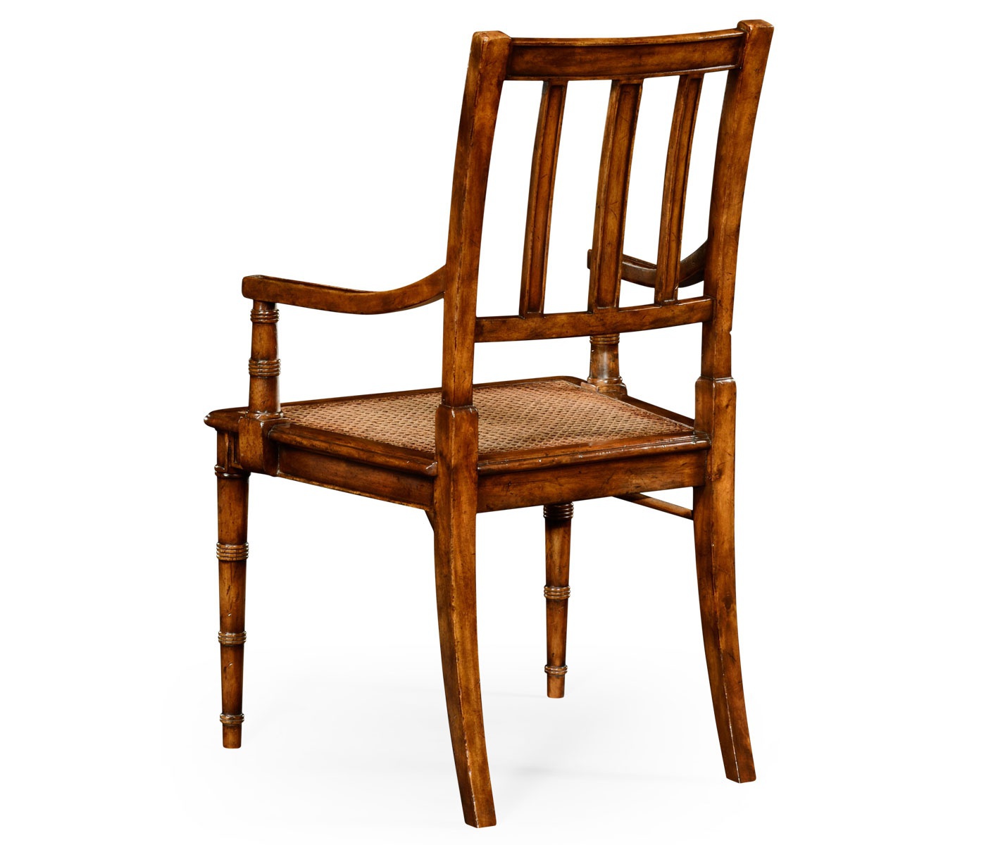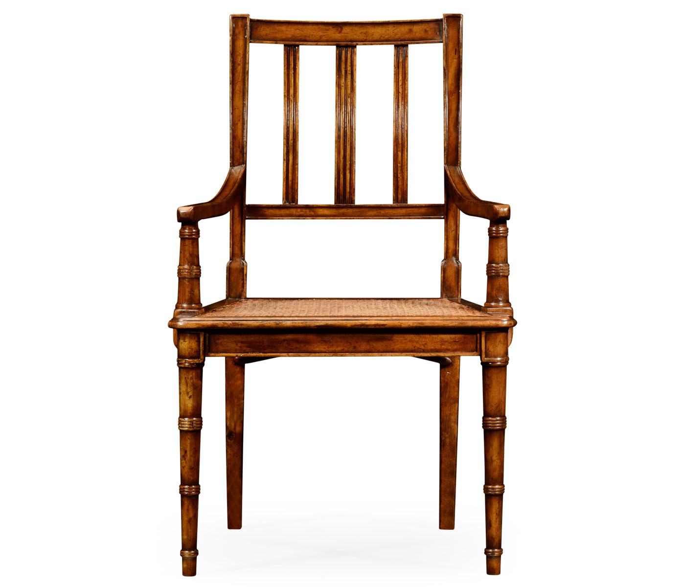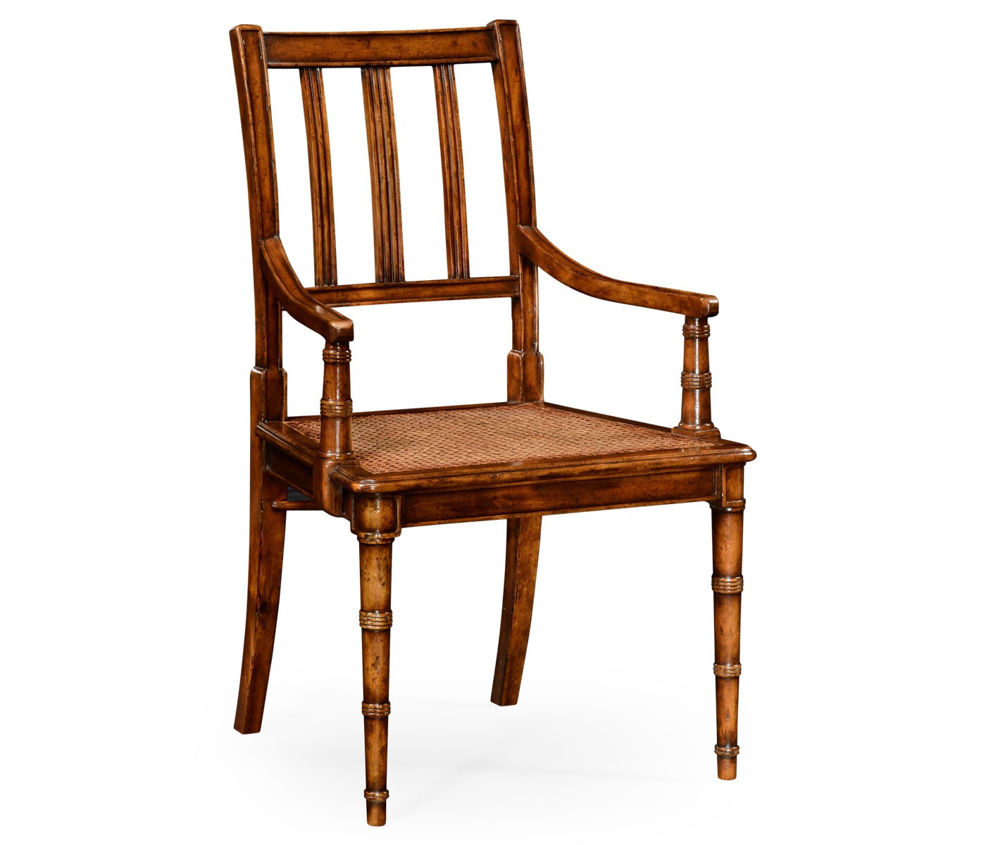 Chair Country Farmhouse from the American manufacturer Jonathan Charles. The model with armrests and high back. Legs are figured, carved in the form of bamboo, the seat is made of cane. The frame is made of wood. Designed in country style.