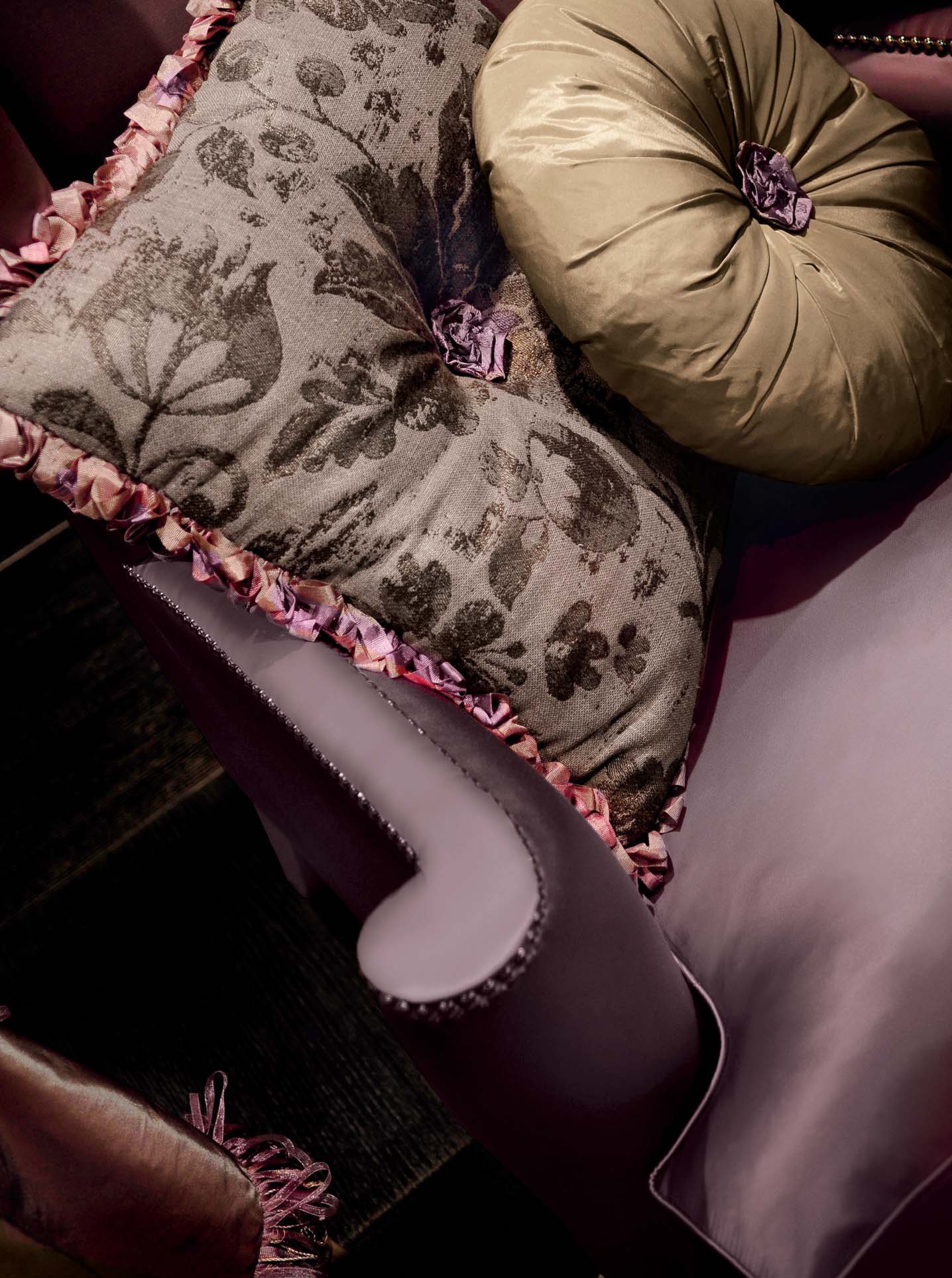 The Gaudi chair from the Italian manufacturer Bruno Zampa. A collection of Scenes di Inspiration. Frame of solid wood. Upholstery textile from the company portfolio. Seat cushion: down and insert in polyurethane. Colours in stock.