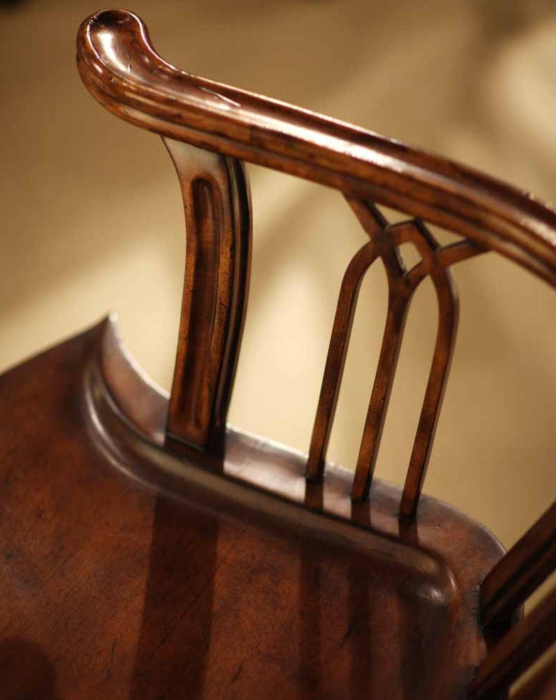 The Windsor chair from the American manufacturer Jonathan Charles. The model with the original back and armrests in bent legs. The chair is made on a frame of wood. Design inspired by the original 18th century Gothic style.