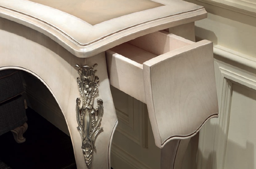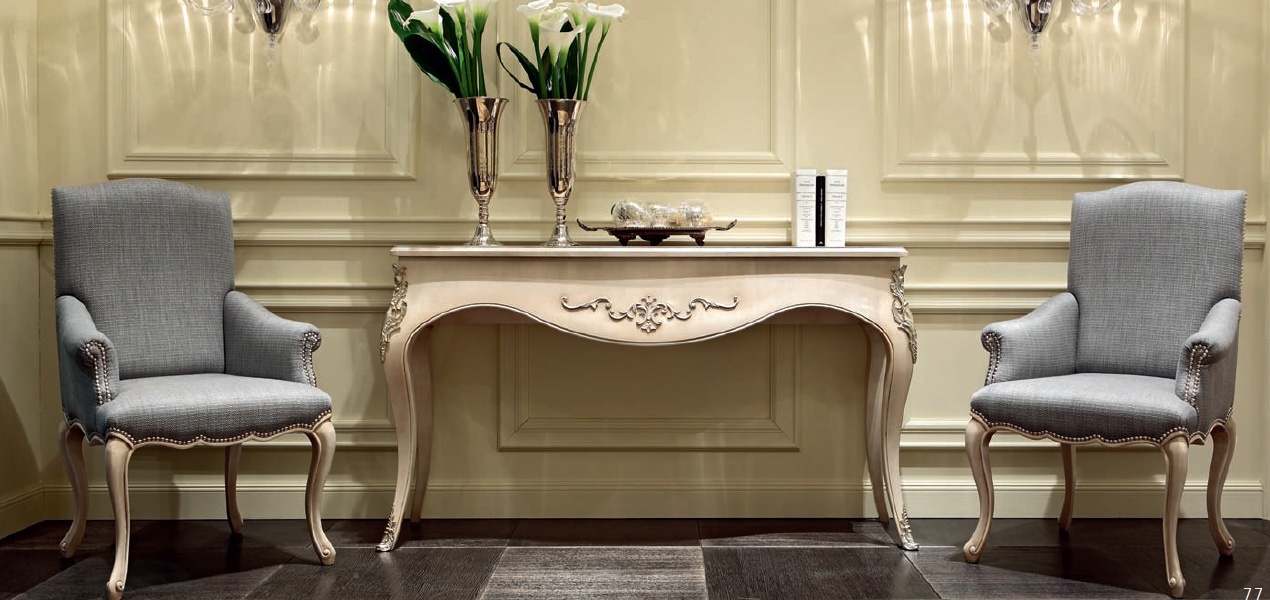 Tosca from the Diamond collection from the Italian manufacturer Bruno Zampa. Frame of solid wood. Legs are decorated with hand-carved. Decorative elements in silver-plated finish. Colours in stock.