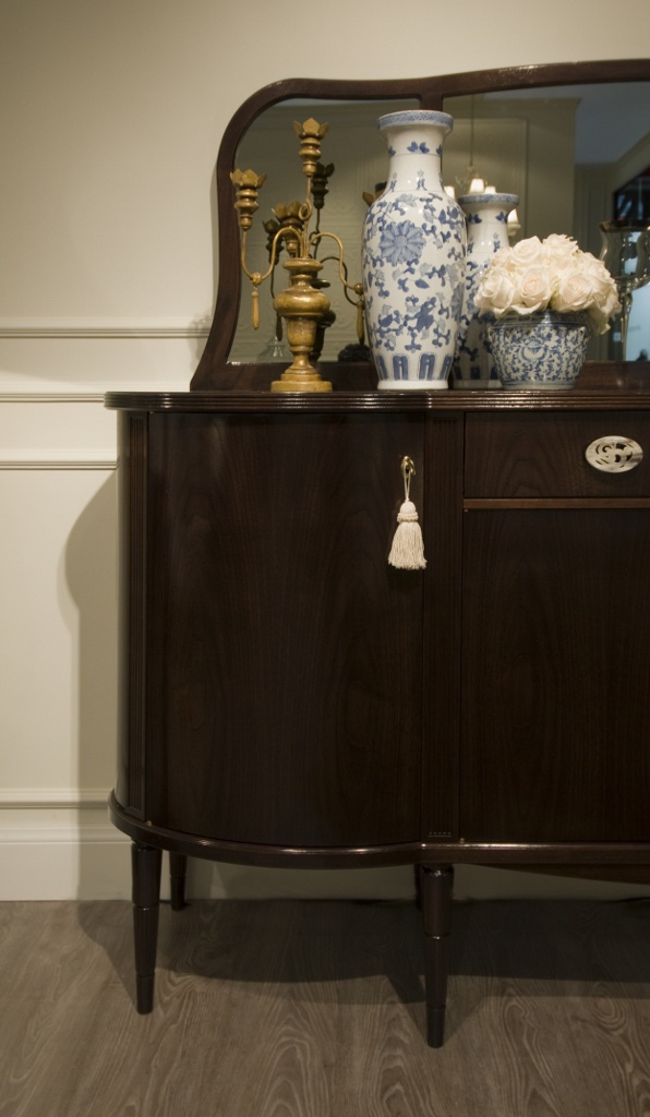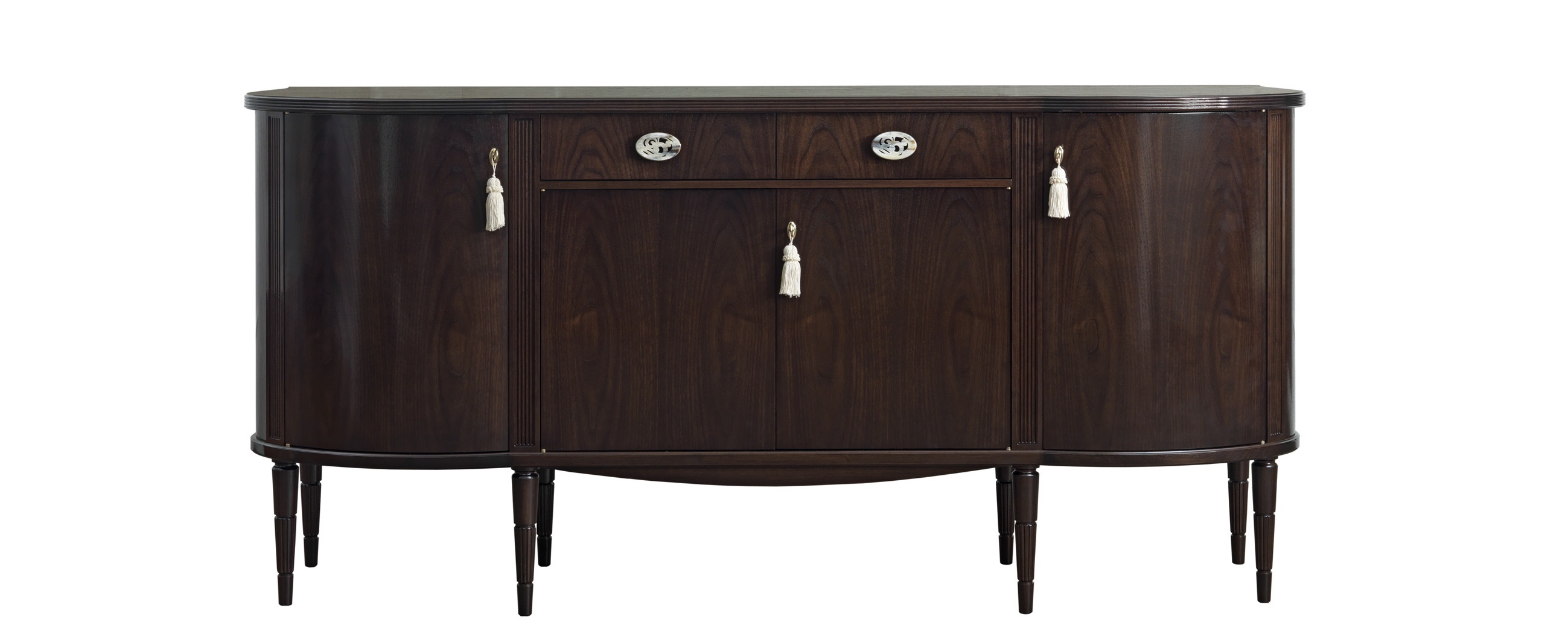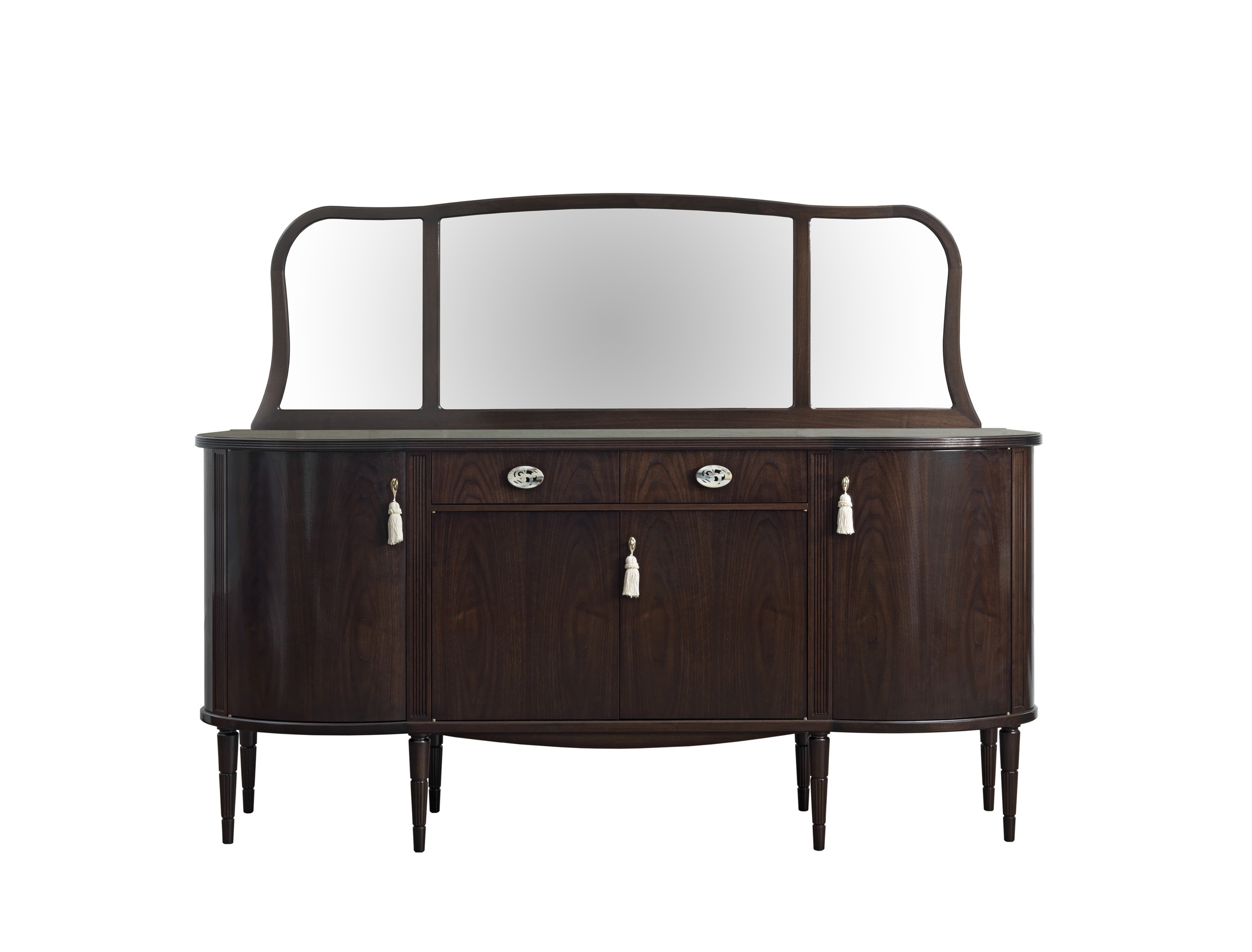 The buffet Dorabella from the Italian producer Galimberti Nino. Designer Fabio Crippa. The frame is made of American walnut. The model with four doors and two drawers. Colours in stock. The design complements the figure of the mirror. A great addition for the living room in classical style with elements of art Deco.
