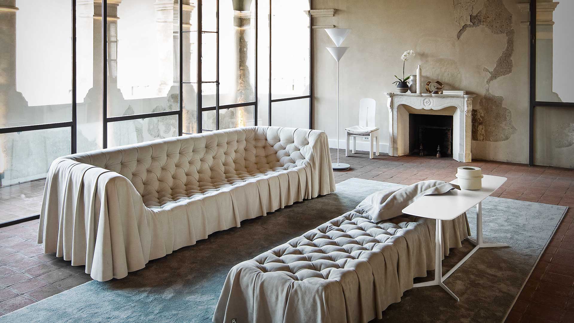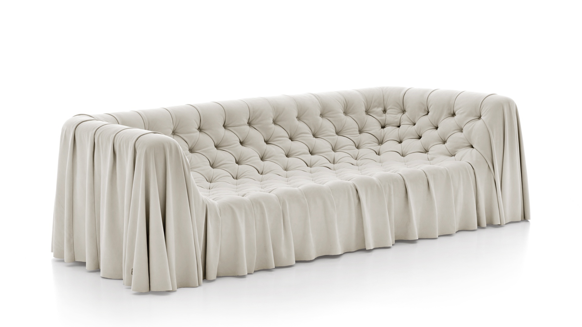 Triple Bohemien sofa from Italian manufacturer Busnelli. The frame is made from solid wood and plywood. A filler of rigid polyurethane foam with a differentiated density and 100% polyester fiber, upholstery leather or textiles from a range of campaigns. The sofa is decorated by hand with stitch captain skilled workers. The model is designed for modern interiors. Color of the product catalog of the manufacturer.