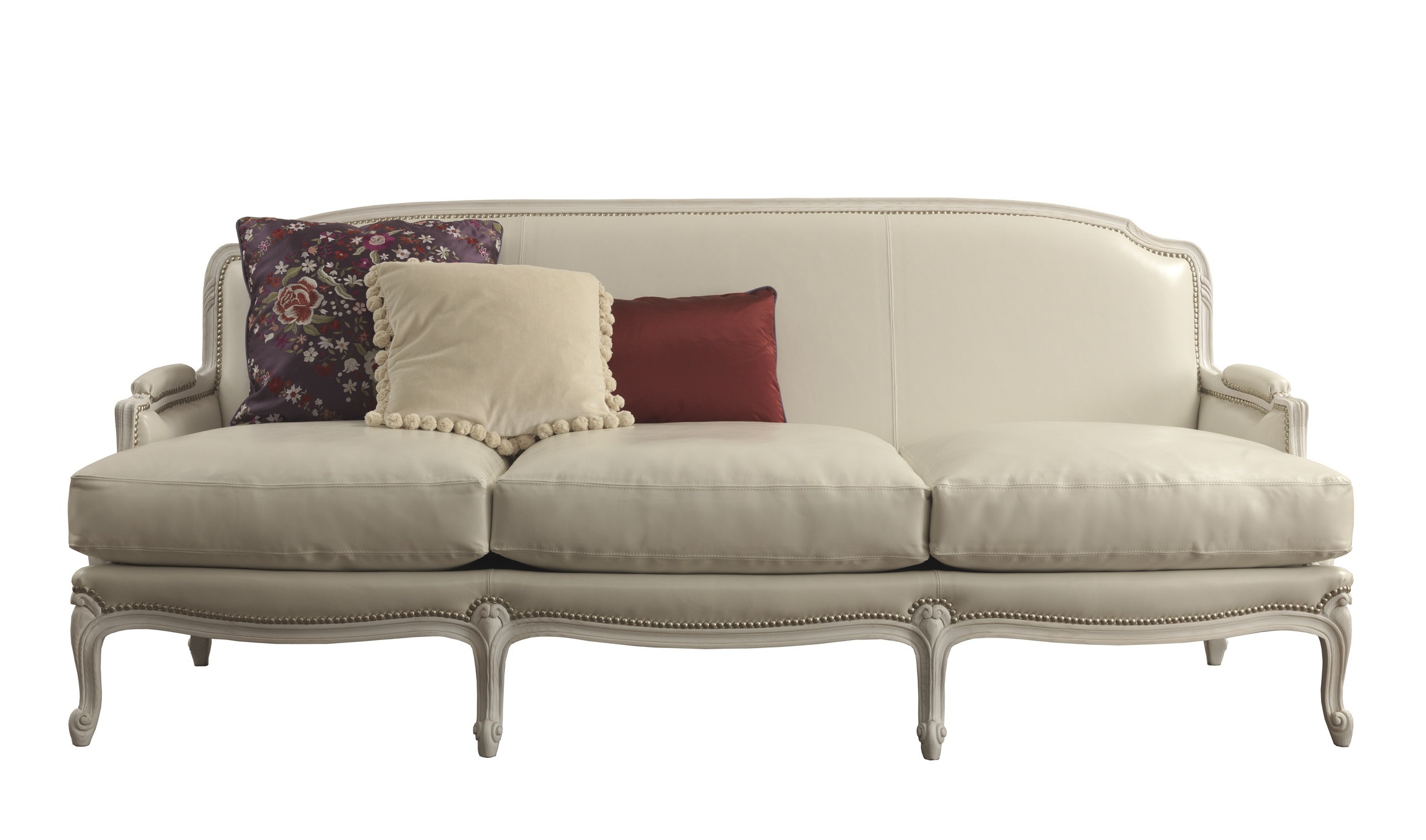 Three seater sofa Pigra from the Italian producer Galimberti Nino. Designer model Joe Gentile. Filler seat cushions and fluff back. The frame is made of solid ash. The finishing - varnish. Upholstery fabric or leather, according to customer, manually nailed the decorative nails. A great option for the living room in a classic style.