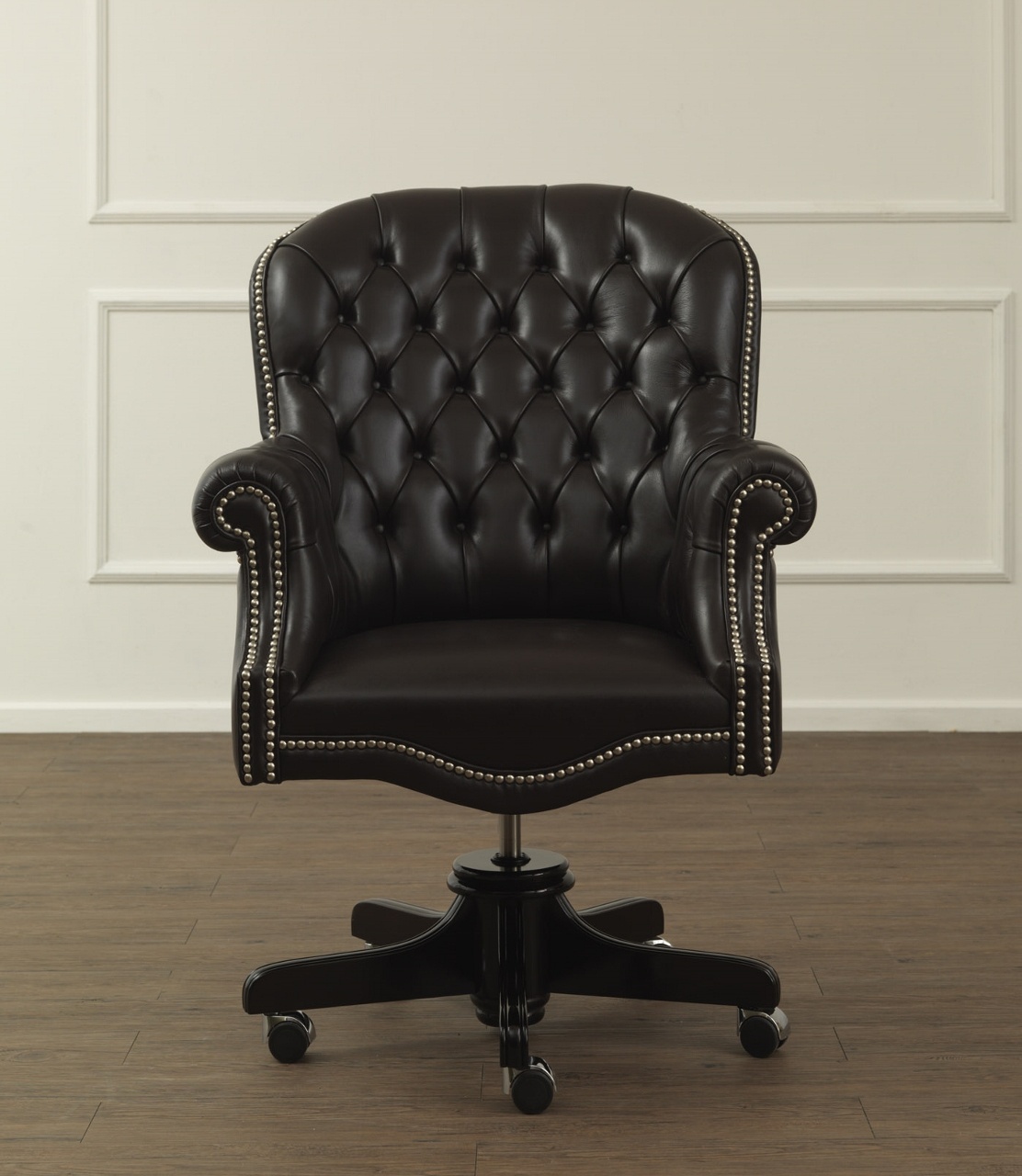 The chair on a rotating basis James from the Italian producer Galimberti Nino. Designer model Joe Gentile. The base is made from solid ash, finished with lacquer. Upholstery textiles or leather from a range of companies, manually nailed the decorative nails. Colours in stock. A great option for a classic office.