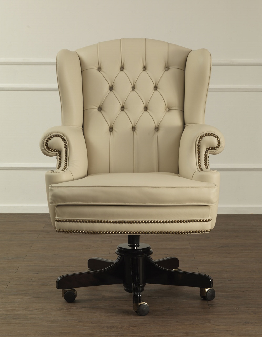 The chair on a rotating basis from the Sinatra office of the Italian producer Galimberti Nino. Designer model Joe Gentile. A chair on wheels rotating, the base of solid ash, finished with lacquer. Upholstery leather or fabric from the company portfolio, manually nailed the decorative nails. Colours in stock. A great option for a classic office.