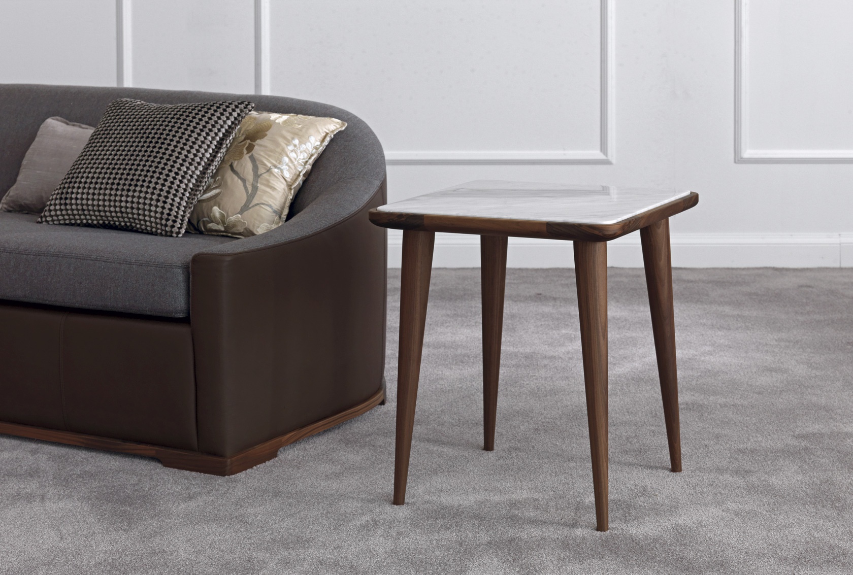 Tinello coffee table from Italian producer Galimberti Nino. The design is from Fabio Crippa. The table is made from solid ash or American walnut. Table top square shape made of glass or marble, at the request of the customer. Colours in stock. Modern addition to your living room.
