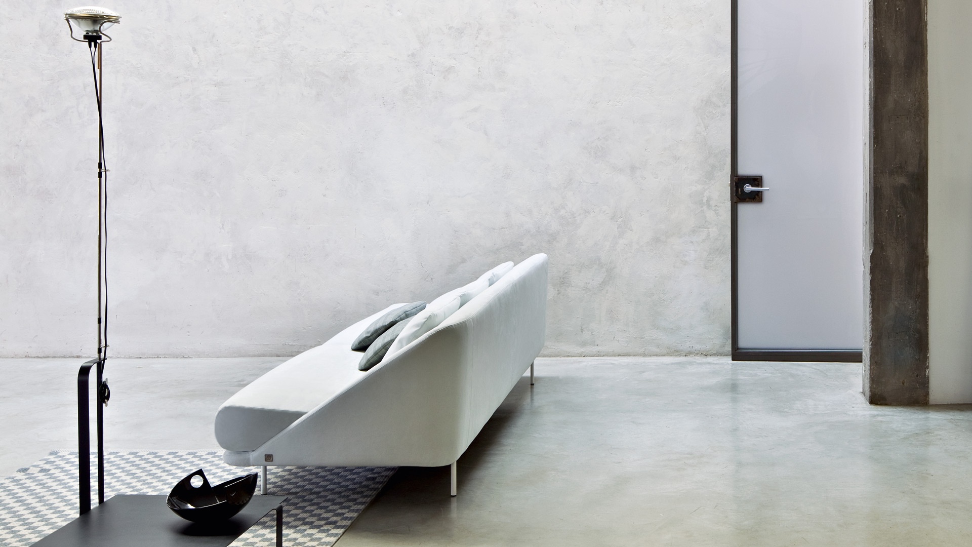 Daytona two-seater sofa from Italian manufacturer Busnelli. The frame is made of wood, legs made of metal with epoxy lacquer in black or white. The seat cushion has a supporting frame made of not deformable polyurethane foam and 100% polyester fiber. Upholstery - leather or textiles from a range of campaigns. The model is designed for modern interiors. The design of complementary decorative pillows from down.