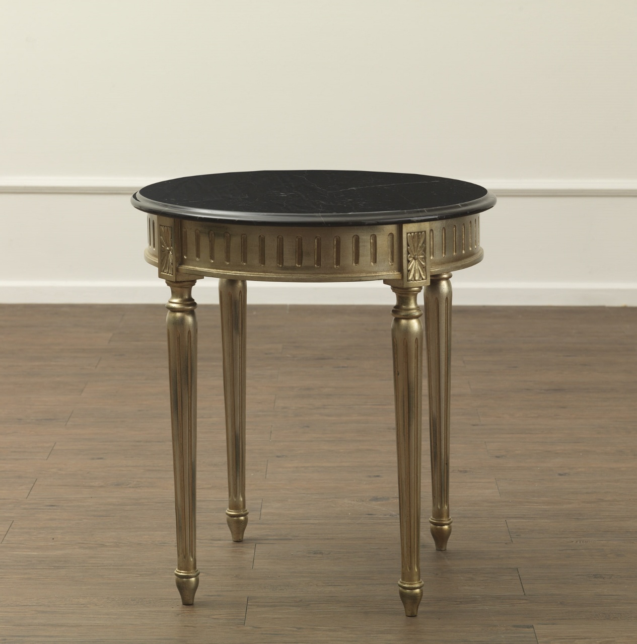Victor round coffee table from Italian producer Galimberti Nino. The design is from Joe Gentile. The frame is made from solid beech wood, finish - patina. The table top is made of marble. Colours in stock. Great addition for a living room in classic style.