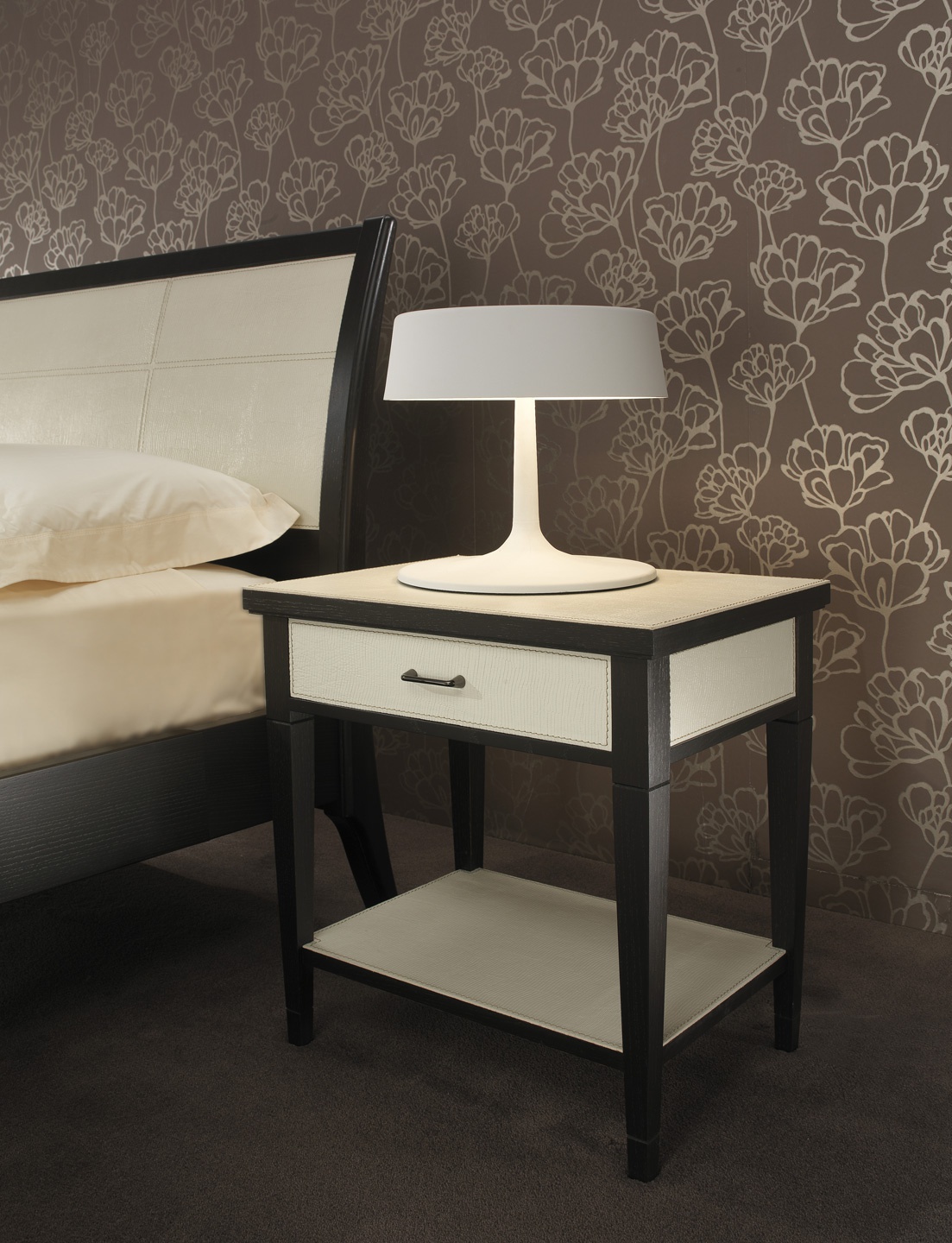 Panama bedside table from Italian producer Galimberti Nino. Designer Joe Gentile. The model is made from solid wood ash, fronts upholstered in leather. Colors to choose in stock. Stylish option for furnishing your bedroom.