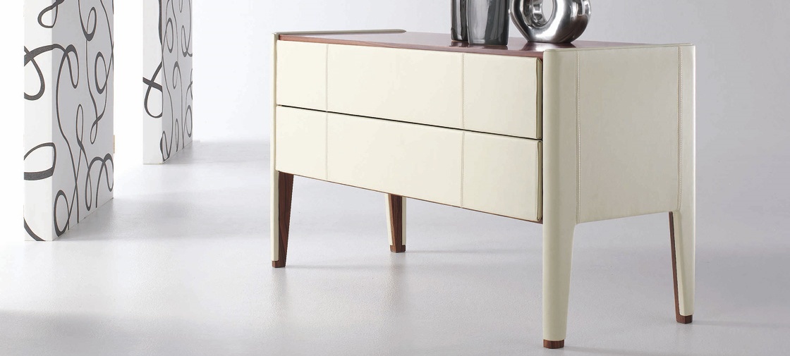 The drawers Viceversa from Italian producer Galimberti Nino. Designer Fabio Crippa. The frame is made from solid wood of ash, American walnut or Santos palisander, upholstered in textile or leather based on manufacturer's catalogue. A great solution for bedrooms in modern style.