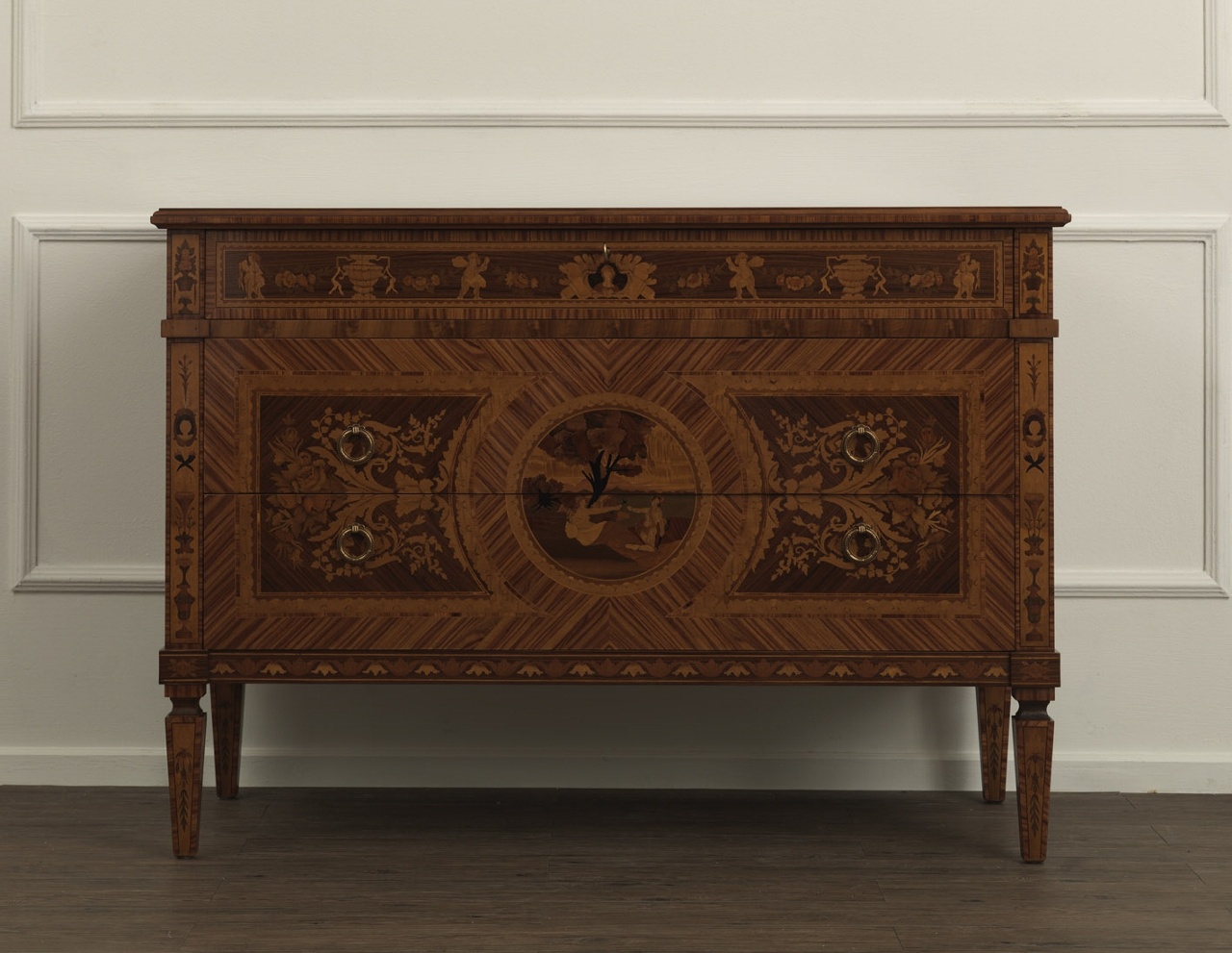 The drawers Otello from the Italian producer Galimberti Nino. Designer model Joe Gentile. The frame is made of wood with inlay handmade, fittings - brass. Colours in stock. The classical solution for the bedroom.