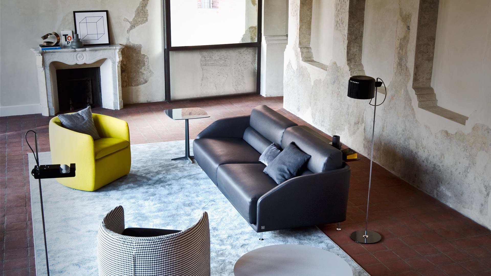 Two-seater sofa with frame in wood and metal Mylo from the Italian manufacturer Busnelli. Model with adjustable backrest with legs in chromed metal or black Nickel. The body is made of laminated wood, a core of polyurethane foam and 100% polyester. Upholstery fabric or leather of your choice from the collection of the company. Each element can be electrically extending mechanism, operated by remote control. Additionally, the factory offers a shelf made of metal, covered with black or dark brown skin. The ideal solution for a living room in modern style.