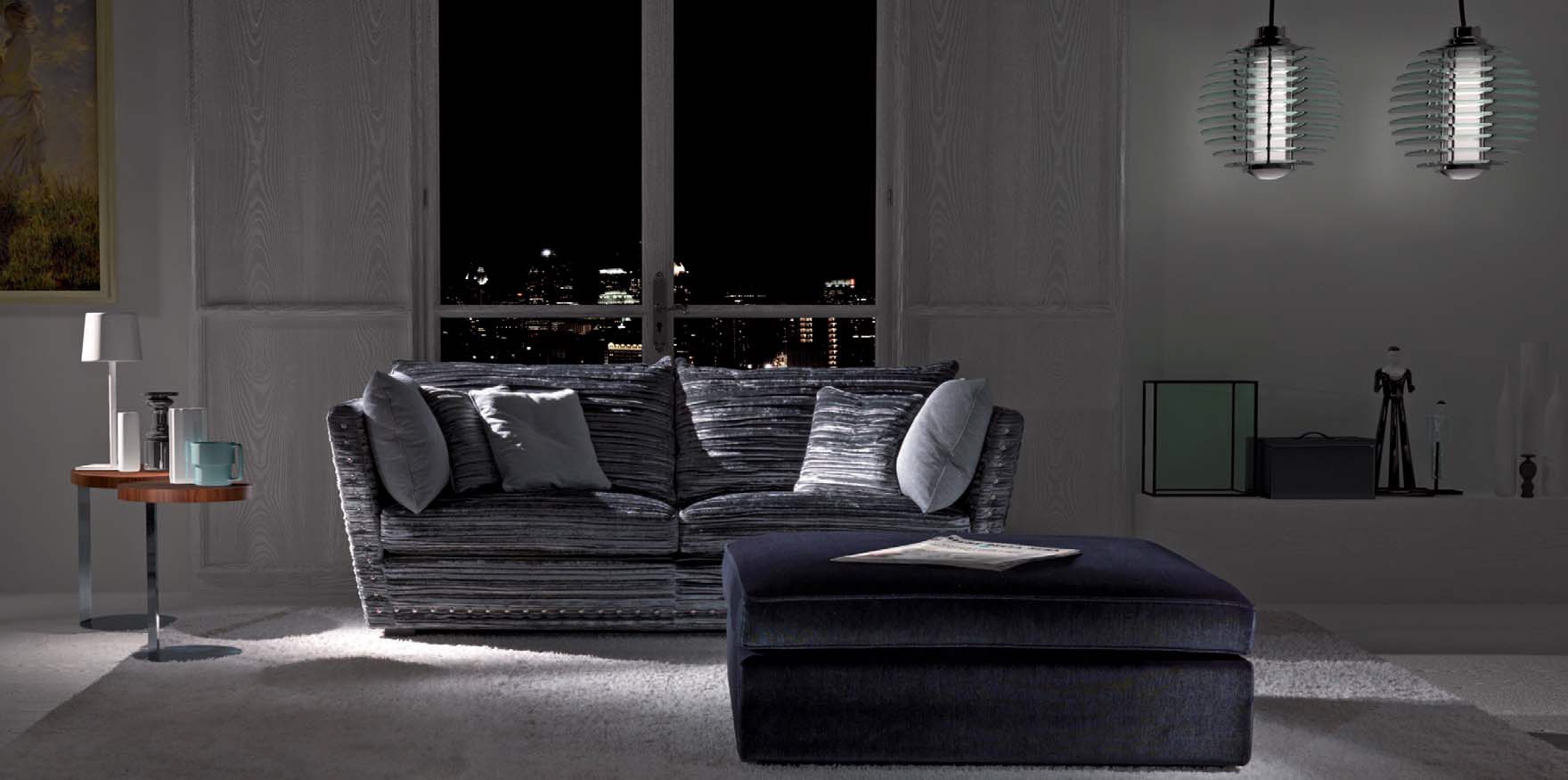 Double sofa Caccia from the Italian manufacturer Asnaghi (Made in Italy), the Penthouse collection . Sofa upholstered in fabric or leather. The frame is made of wood. The model is supplemented with decorative pillows. Colours in stock.