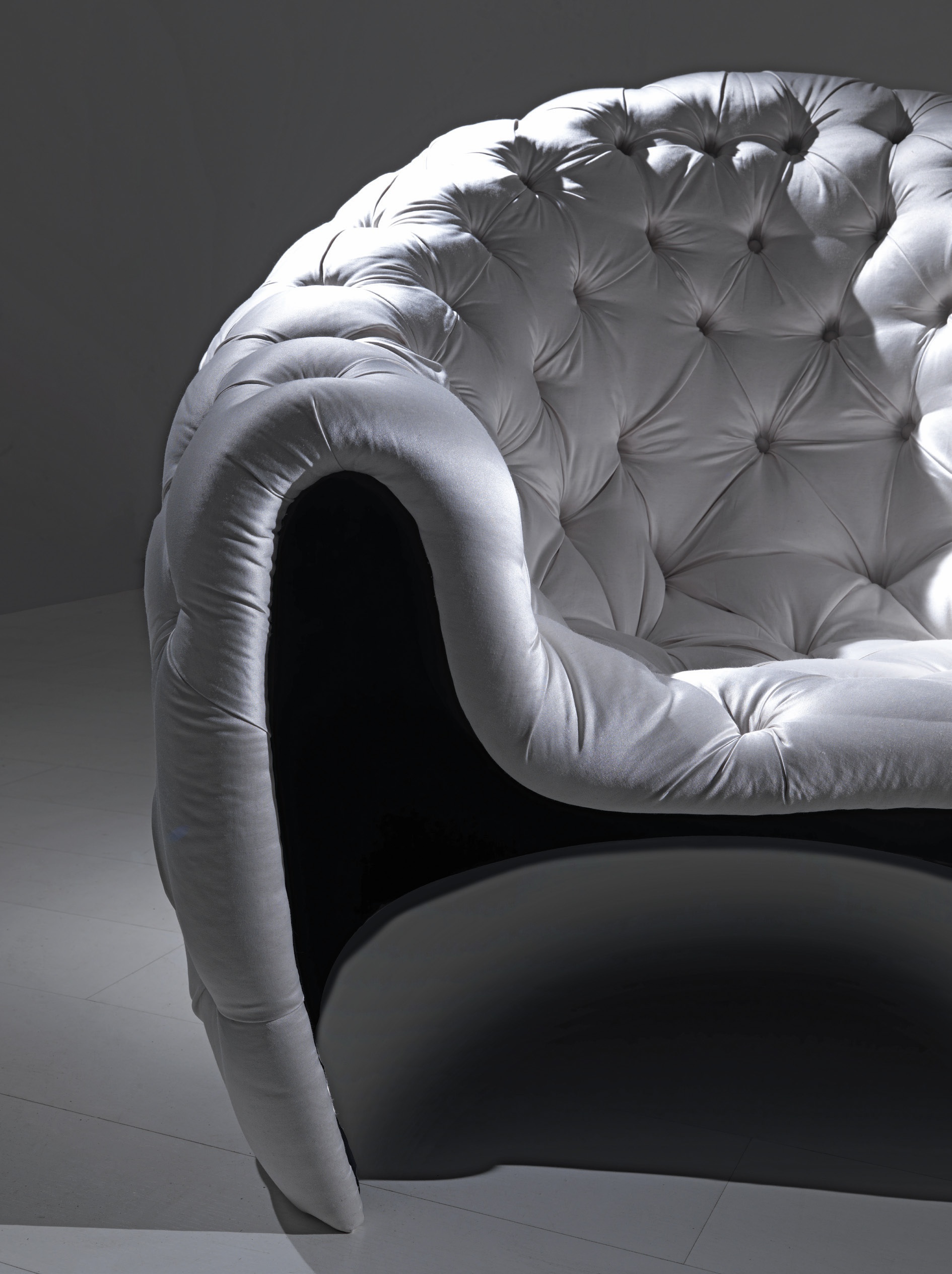 Round chair soft Touch upholstery from Italian manufacturer Asnaghi (Made in Italy). Upholstered in textile or leather from the assortment with decorative screed Capito. The frame is wooden. Colours in stock.