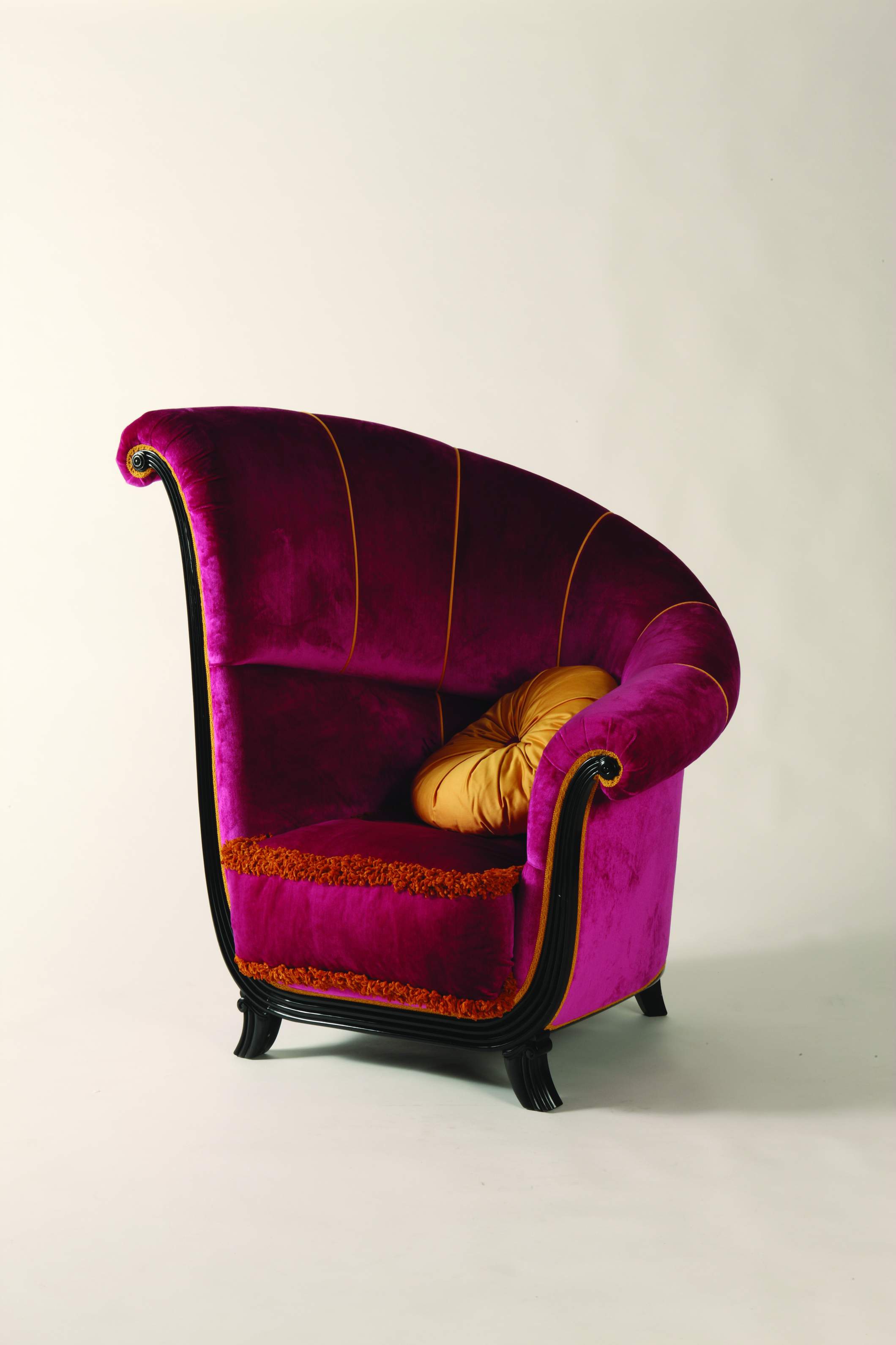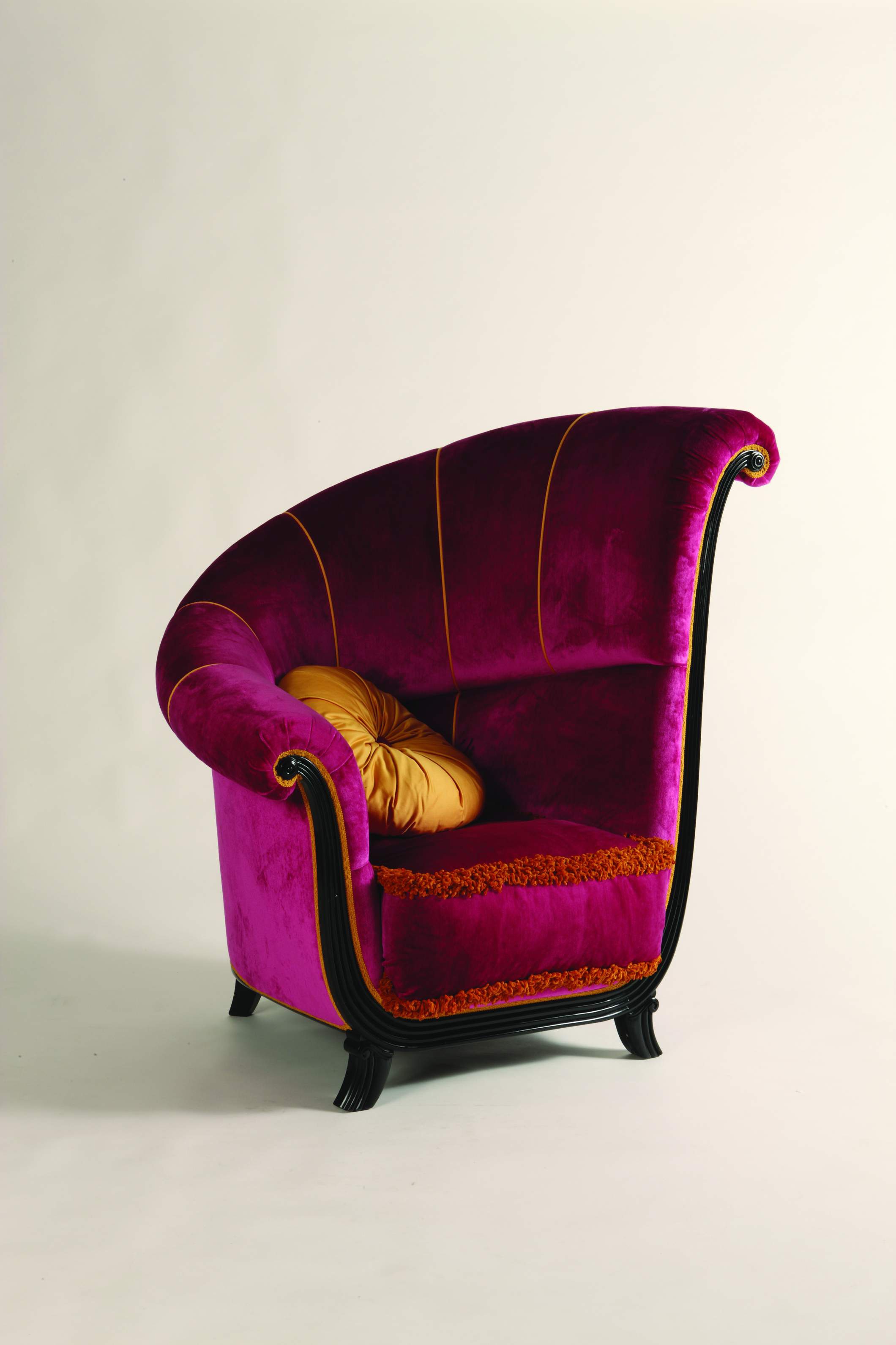 Chair Sandra Rossi from Italian manufacturer Colombo Stile. The frame is natural wood. Finish: Gumrak. Upholstery - textiles. The model is made in the art Deco style. Colours in stock.