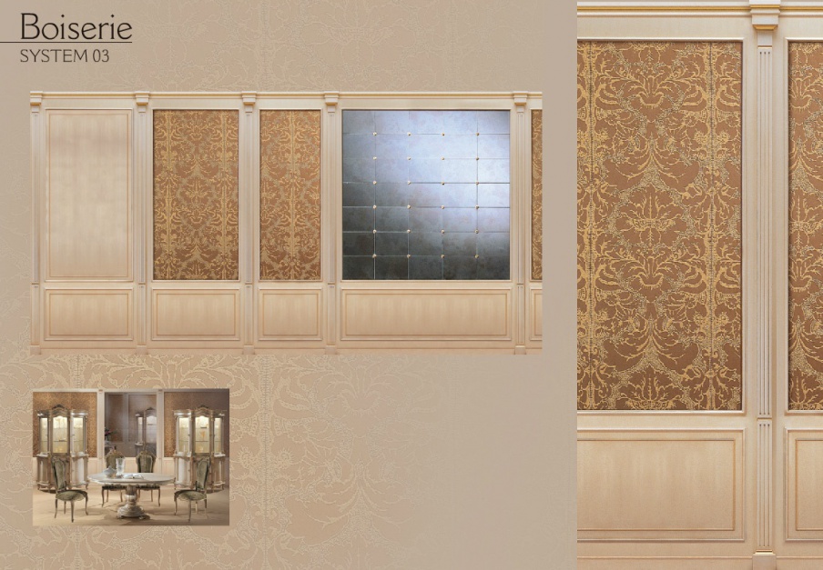 Panel boiserie from the Italian manufacturer Angelo Cappellini. A great option for the decoration of the dining room. Wall panels made of natural wood. Using boiserie emphasize the individuality of your interior.
