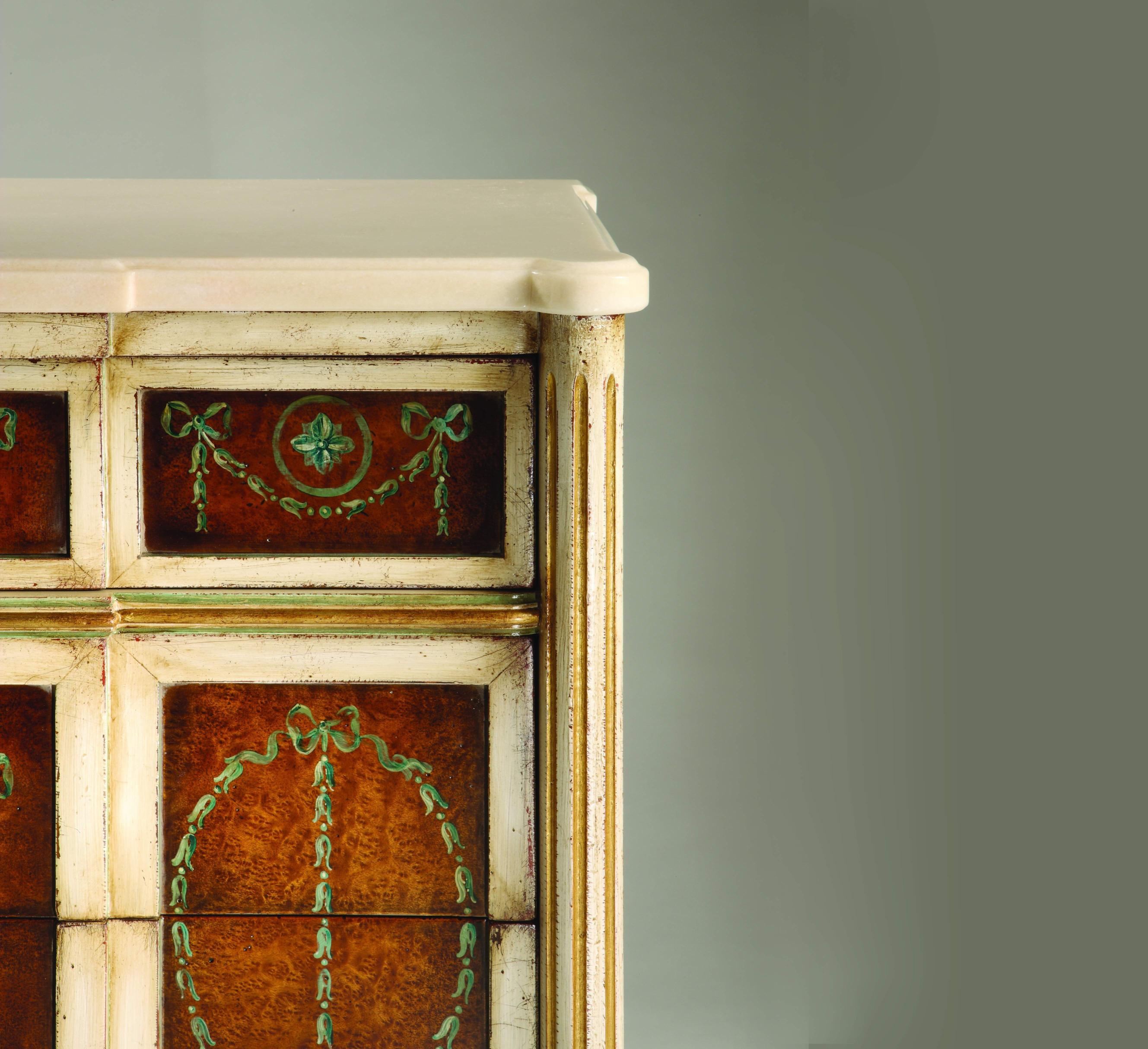 Console by Sandra Rossi from Italian manufacturer Colombo Stile. Console in the style of Charles X with 1 drawer. Carving handmade by natural wood. Polishing cherry colour with patina "extra Antiques" marble strata. 20. colors in stock.