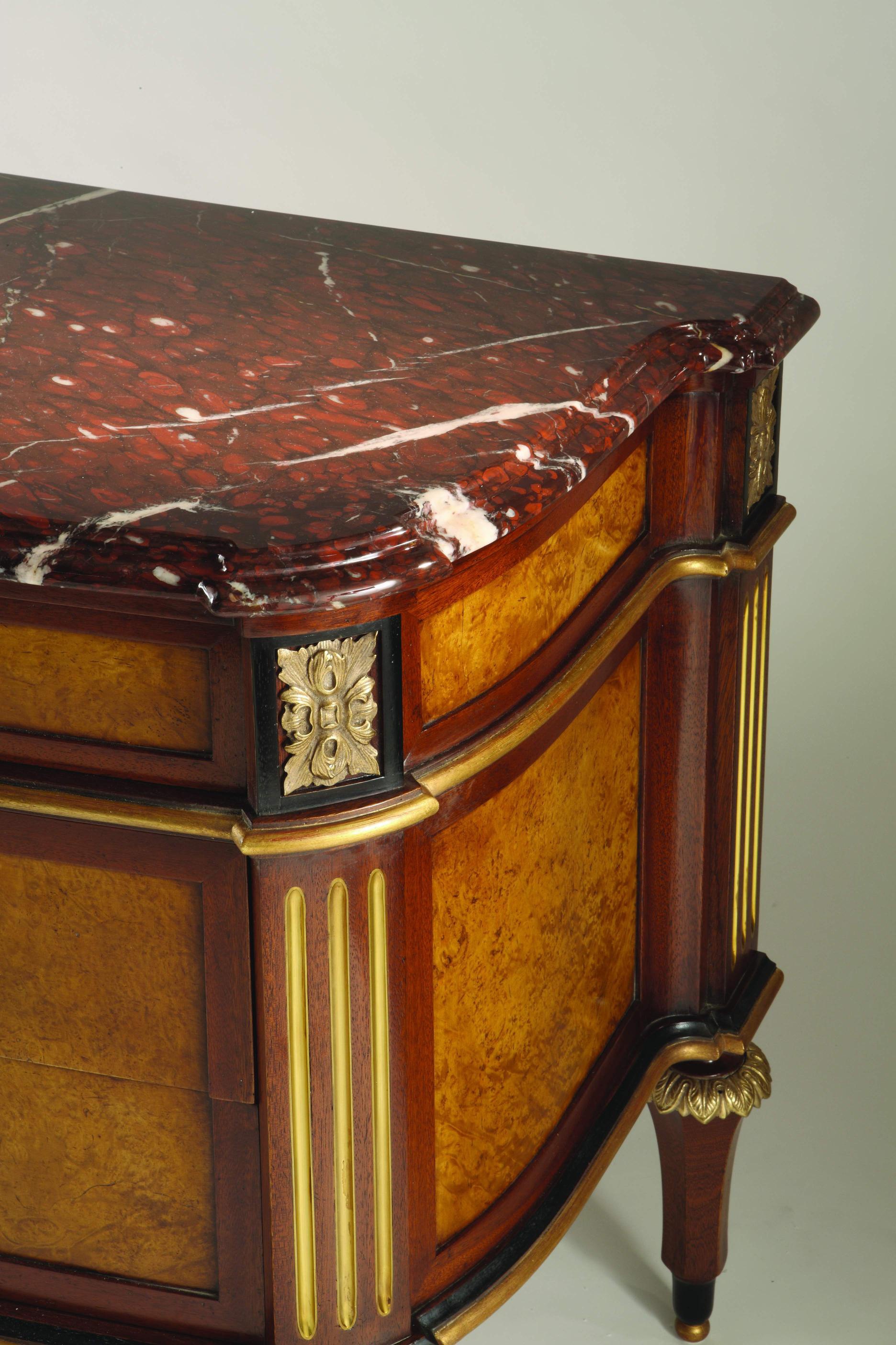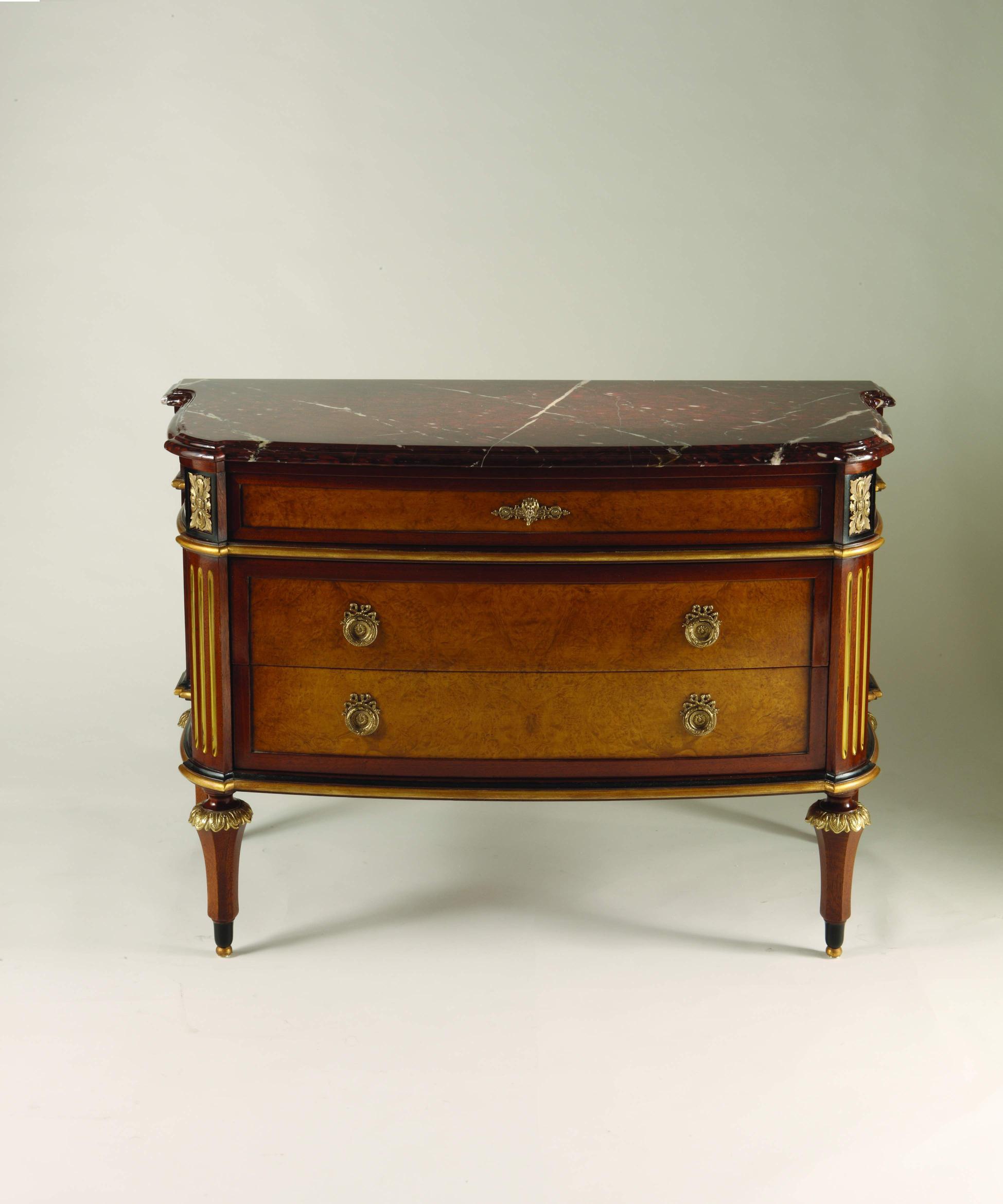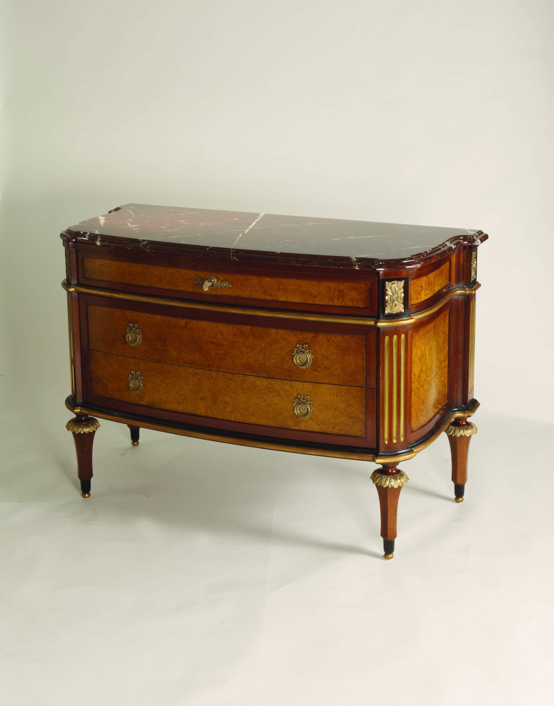 A dresser made of wood Sandra Rossi from Italian manufacturer Colombo Stile. A chest of drawers in the Louis XVI style with 3 drawers. The root of the Myrtle, and mahogany. Carving handmade by natural wood.