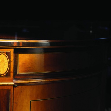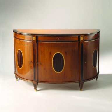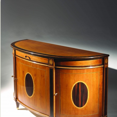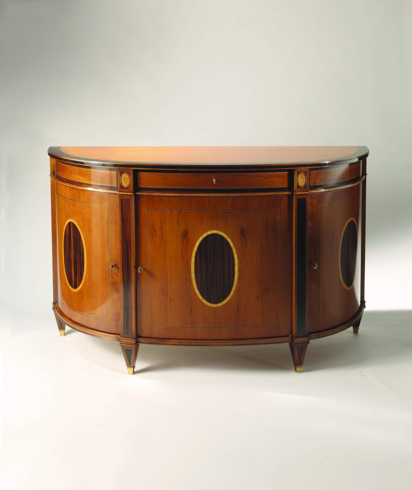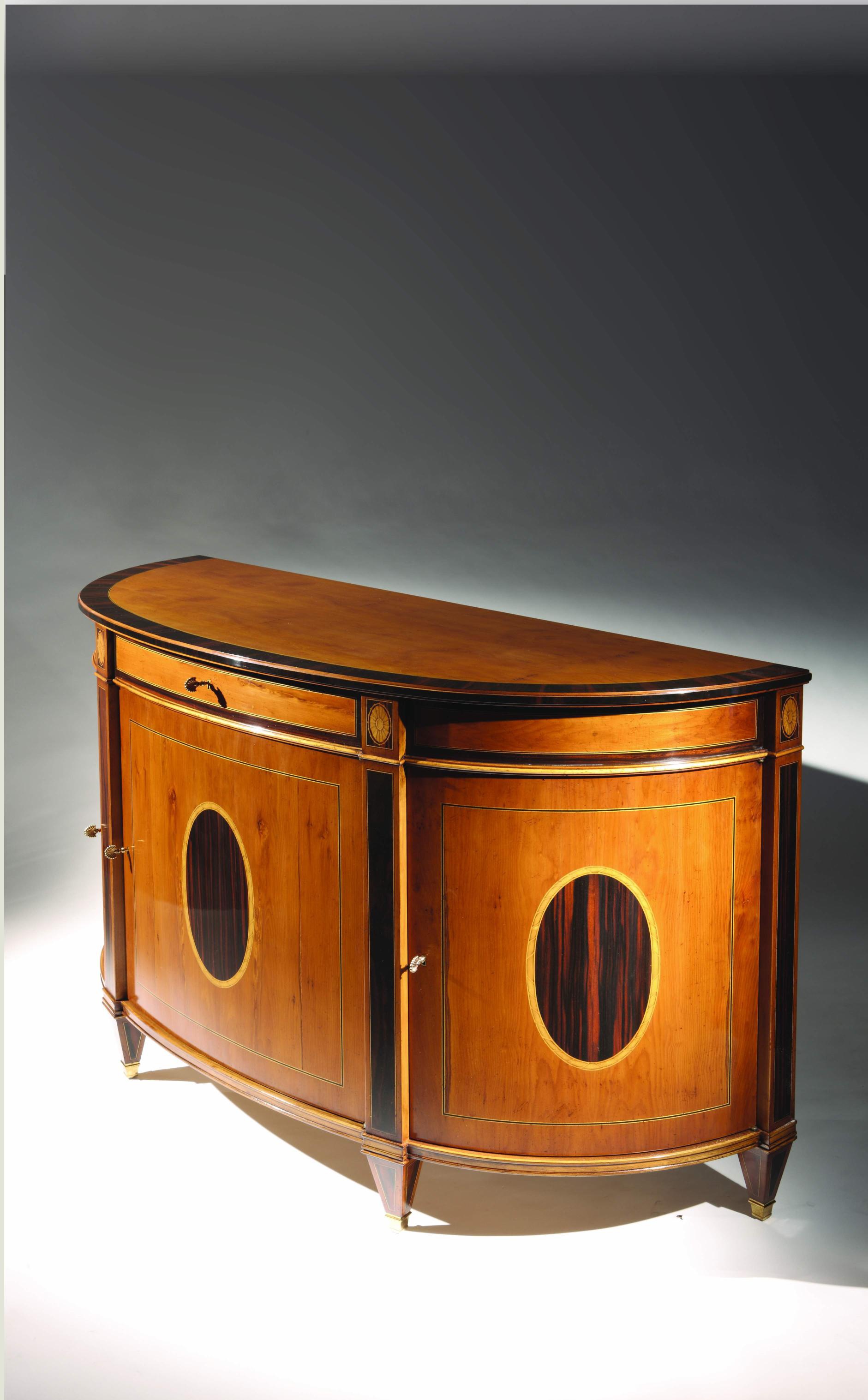 A snack bar Sandra Rossi from Italian manufacturer Colombo Stile. Buffet in classic style. 3 shutters and 1 drawer. Yew tree, with incestanime ebony Makassar. Polished with patina "extra Antiques".