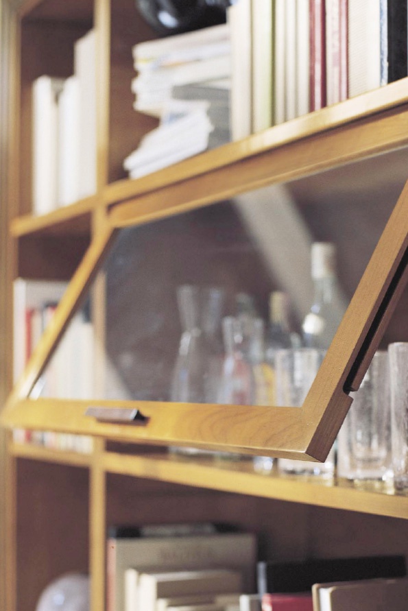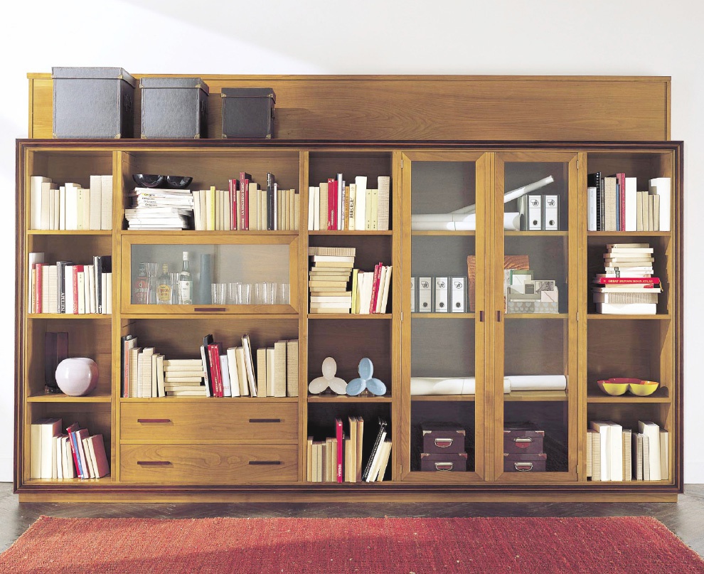 The wall to store books Stoccolma Italian manufacturer Bizzotto. Furniture with wall panel made from natural wood, combination of light and dark tones. Provided for cabinets with swinging glass doors, drawers, and open modules. A great option for decorating interior living room.