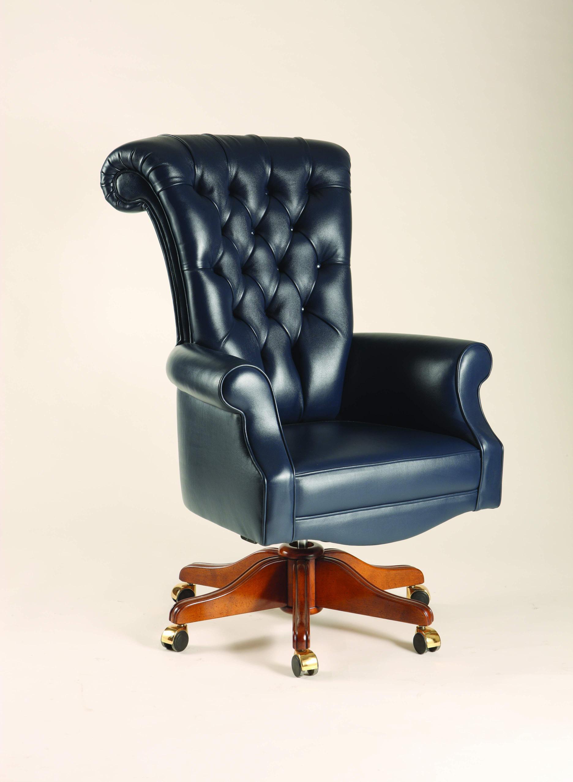 The chair on a rotating basis Sandra Rossi from Italian manufacturer Colombo Stile. Office chair rotating and oscillating, adjustable height. The backrest is upholstered in leather "Capito". The base is cherry wood with 6 rays. Finish: Gumrak and aged patina. Colours in stock.