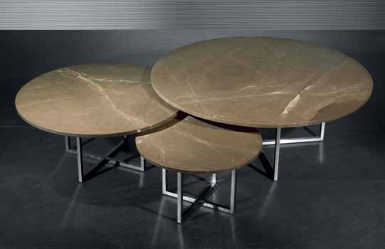 Coffee table Olimpic Marble from the Italian manufacturer Fendi. The frame is made of stainless steel. Table top available in marble and wood. Colours in stock.
