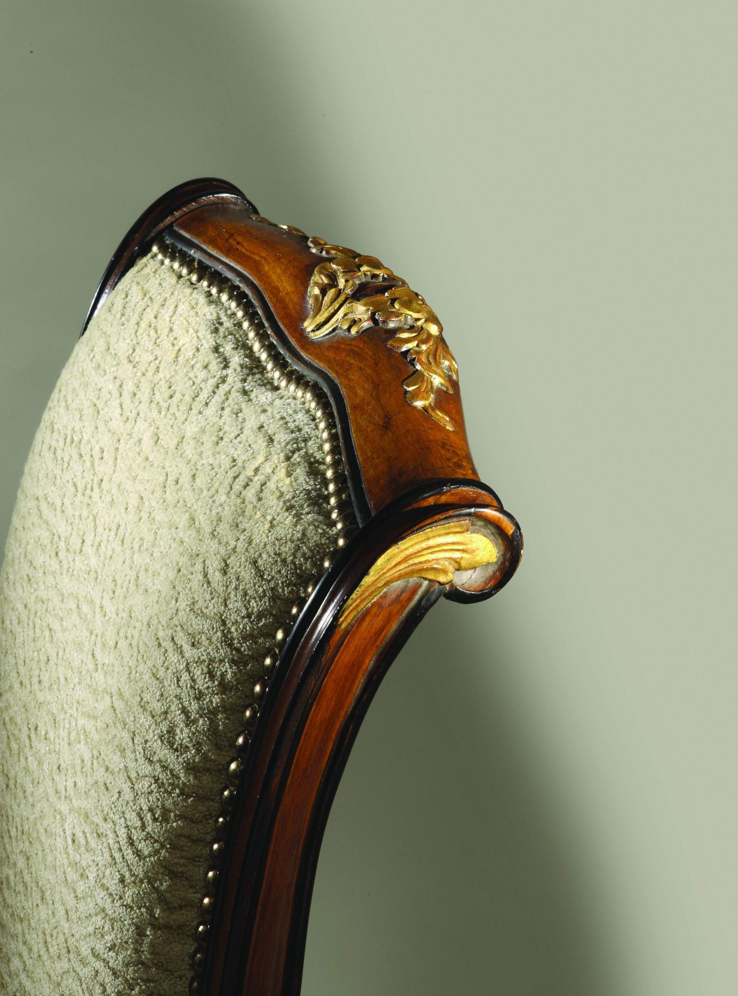Chair Sandra Rossi from Italian manufacturer Colombo Stile. Chair in the style of Louis XV polishing cherry colour with patina "extra Antiques", gold leaf and stain. Colours in stock.