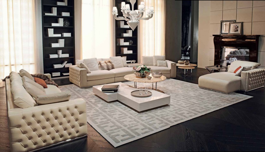 The Plaza modular sofa from Italian manufacturer Fendi. The frame is made of wood. Upholstery - leather or textiles from a range of companies. The model is designed for living room in modern style. Filler - polyurethane/fluff. The design of complementary decorative pillows, filler pen. Colours in stock.