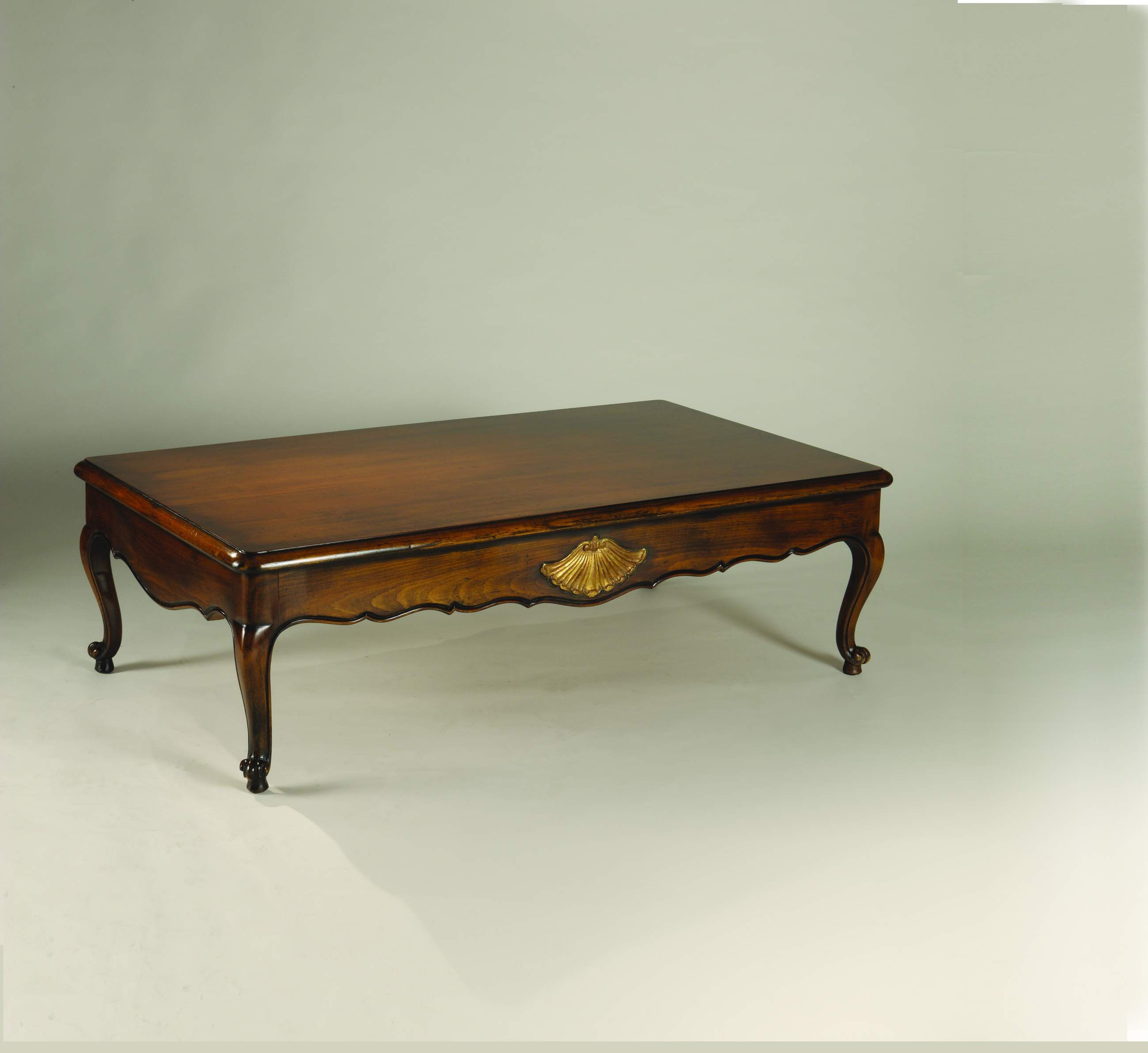 Sandra Rossi coffee table from Italian manufacturer Colombo Stile. Table in a classic style. Legs, table top - natural wood. Polished cherry with gold leaf, antique patina. Colours in stock.