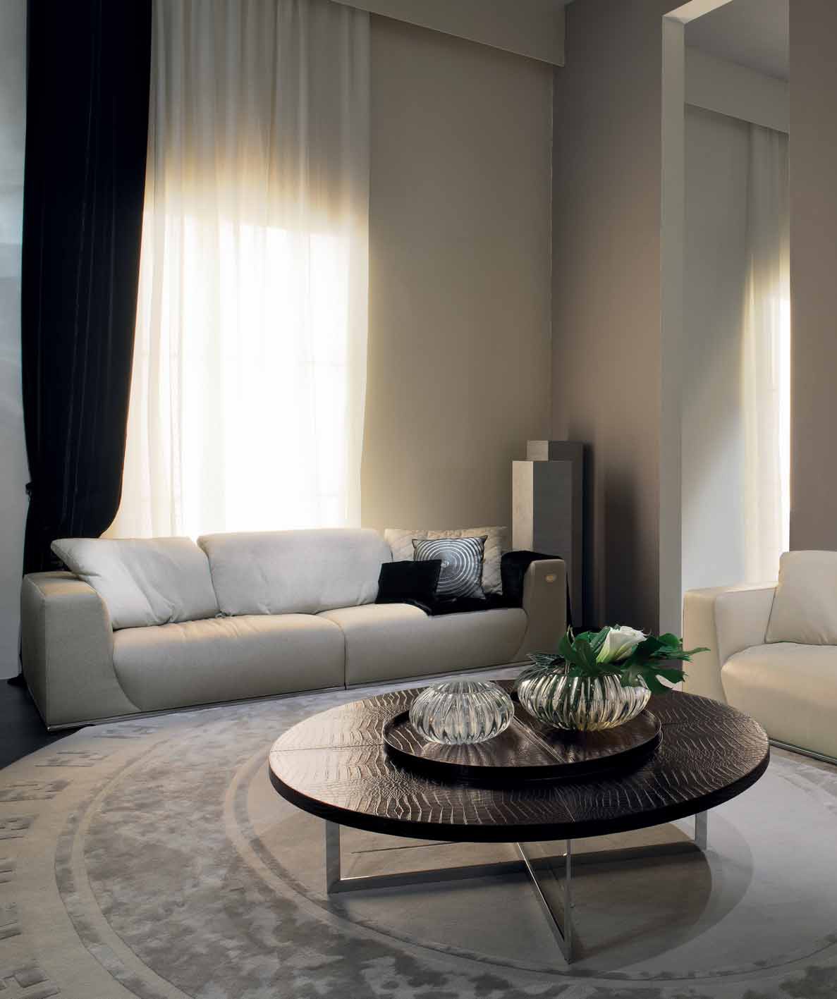 Three seater sofa Fabio from the Italian manufacturer Fendi. The model is designed for living room in modern style. The base is made of wood. Upholstery - leather or textiles from a range of companies. Filler - polyurethane/fluff. Pillow: feather. Colours in stock.