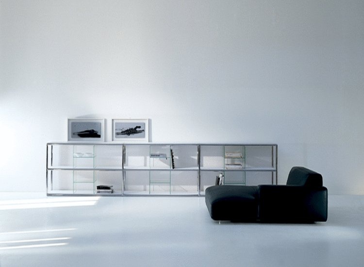 Modular storage system, Brera Rivolta. Module for books with a frame of chromed steel. Top and front doors made of genuine leather. The model is made in modern style, steel product color. Combines the compactness and functionality, great for daily use.