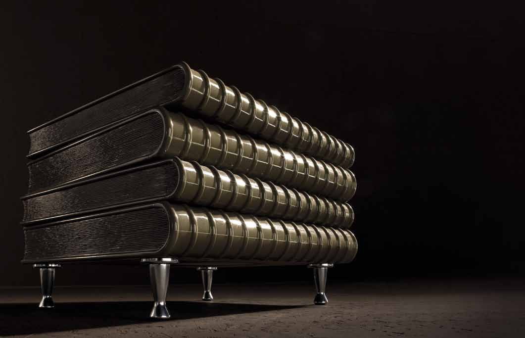 Coffee table Book from the Italian manufacturer JC Passion. Collection Chocolat. The model is made in the form of a pile of books from composite materials, trim high-gloss lacquer from the company portfolio. Legs are not high, Nickel-plated steel. Factory offers two options: with and without legs. Colours in stock. Design solution for your interior.