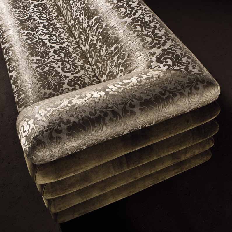 Three seater sofa Kissen from the Italian manufacturer of design furniture JC Passion, made in the style of art Deco. The model with the original design, the frame is made from solid wood. Upholstery - textiles from the assortment of the company. Colours in stock. Design solution for your living room