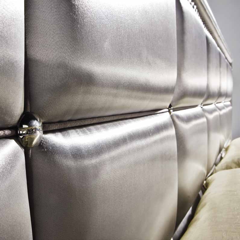 Double bed Morfeo by Italian manufacturer of designer furniture JC Passion Chocolat collection. The frame is made from solid wood and multilayer poplar wood. Rectangular headboard is decorated with screed Capito, framed with a decorative ornament made of brass. The headboard may be in two sizes. Feet with crystal balls. Upholstery - textiles. Orthopedic base is included in the composition.