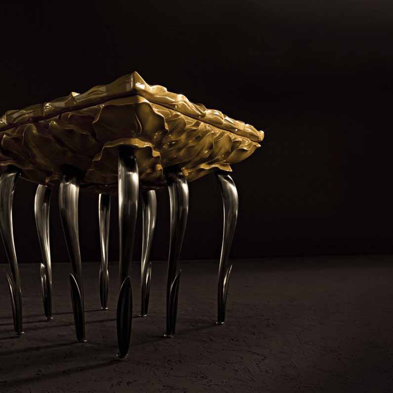 Flower coffee table by Italian manufacturer of designer furniture JC Passion in the art Deco style. Collection Chocolat. Countertop composite, high Polish, finish - Polish from the assortment of the company. Eight legs of brass. Colours in stock. Designer addition to your interior.