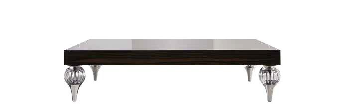 Grenada coffee table from the Italian manufacturer of design furniture JC Passion in the art Deco style. Collection Chocolat. Worktop from solid ebony wood, finish - Matt or glossy varnish. The legs are decorated with crystal balls. Colours in stock. A great addition for the living room in the art Deco style.