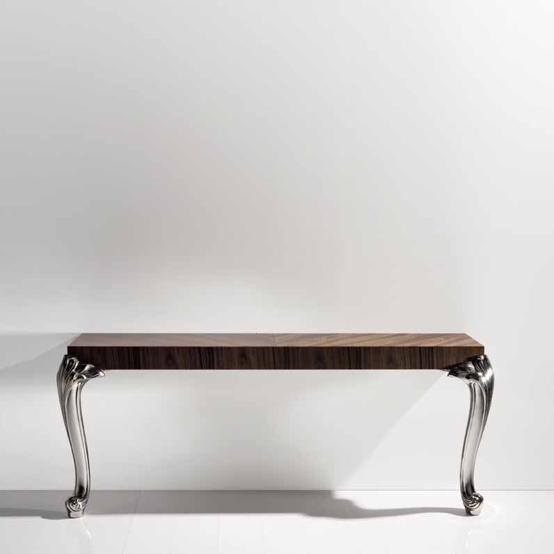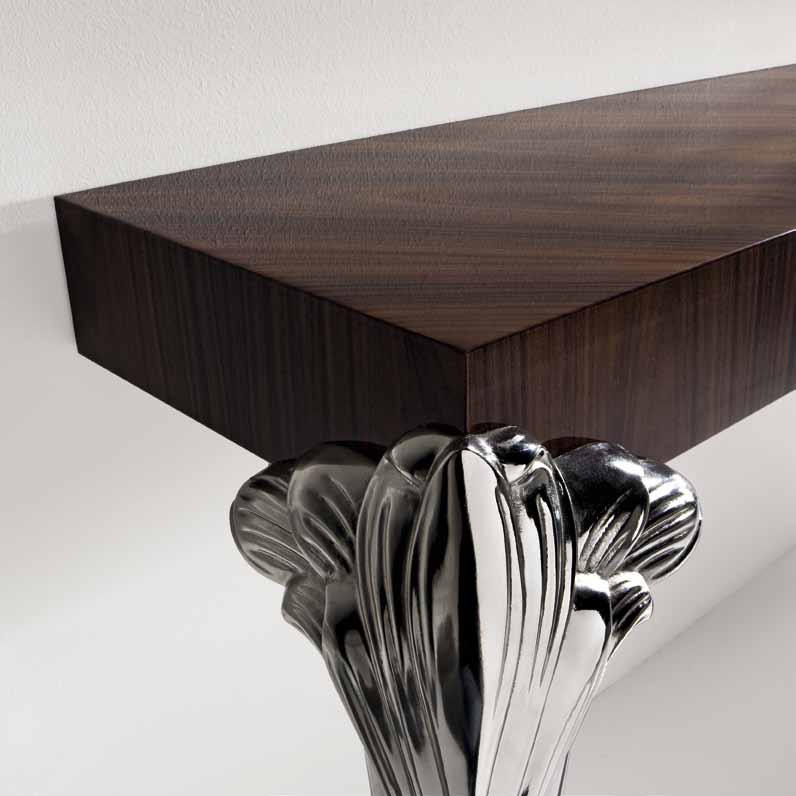 Console Queen from the Italian manufacturer of design furniture JC Passion in the art Deco style. Collection Chocolat. Countertop made of natural wood rosewood finish - lacquer from a range of companies. Legs Nickel-plated brass. Colours in stock.