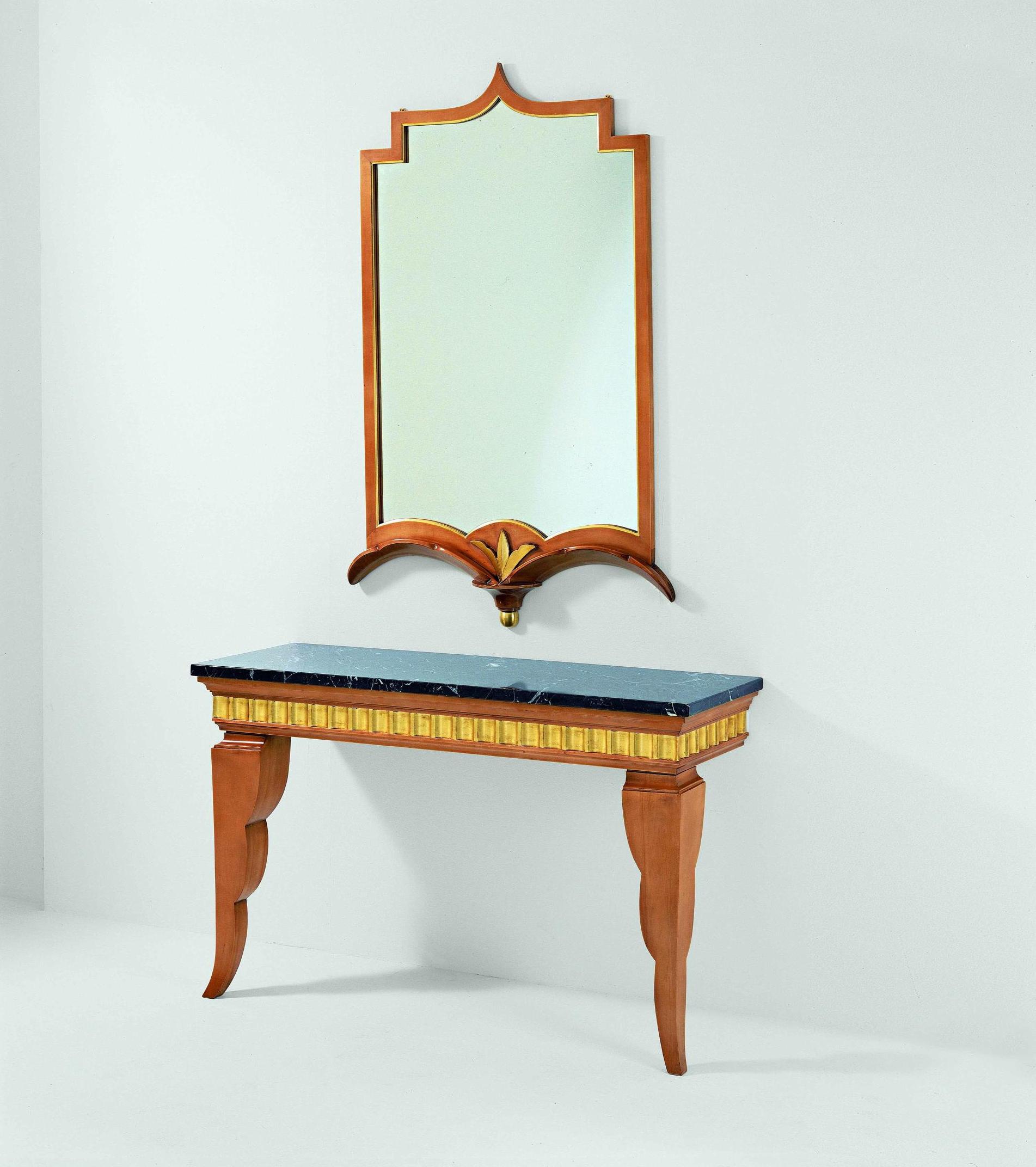 Console S. I. P. ARR 05 from the Italian manufacturer Colombo Stile. Feet, and the architrave is decorated with handmade carving. The frame is natural wood. Finish - lacquer, gilding. The model is made in classic style. Colours in stock.