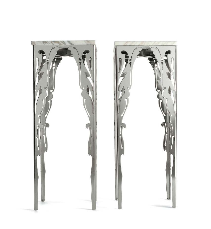 Stand for flowers Arabesque from Italian manufacturer of design furniture JC Passion in the art Deco style. Collection Gold. The table top is made of marble. Stand with feet laser perforation of Nickel-plated metal. Colours in stock. Designer addition to your interior.