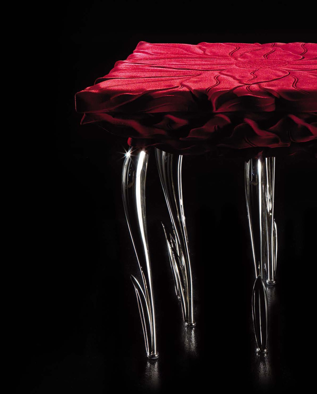 Flower coffee table by Italian manufacturer of designer furniture JC Passion in the art Deco style. Collection Gold. The tabletop is made of composite materials, trim high-gloss lacquer from the company portfolio. Legs are not high, is made of Nickel-plated brass. Colours in stock. Designer addition to your interior.
