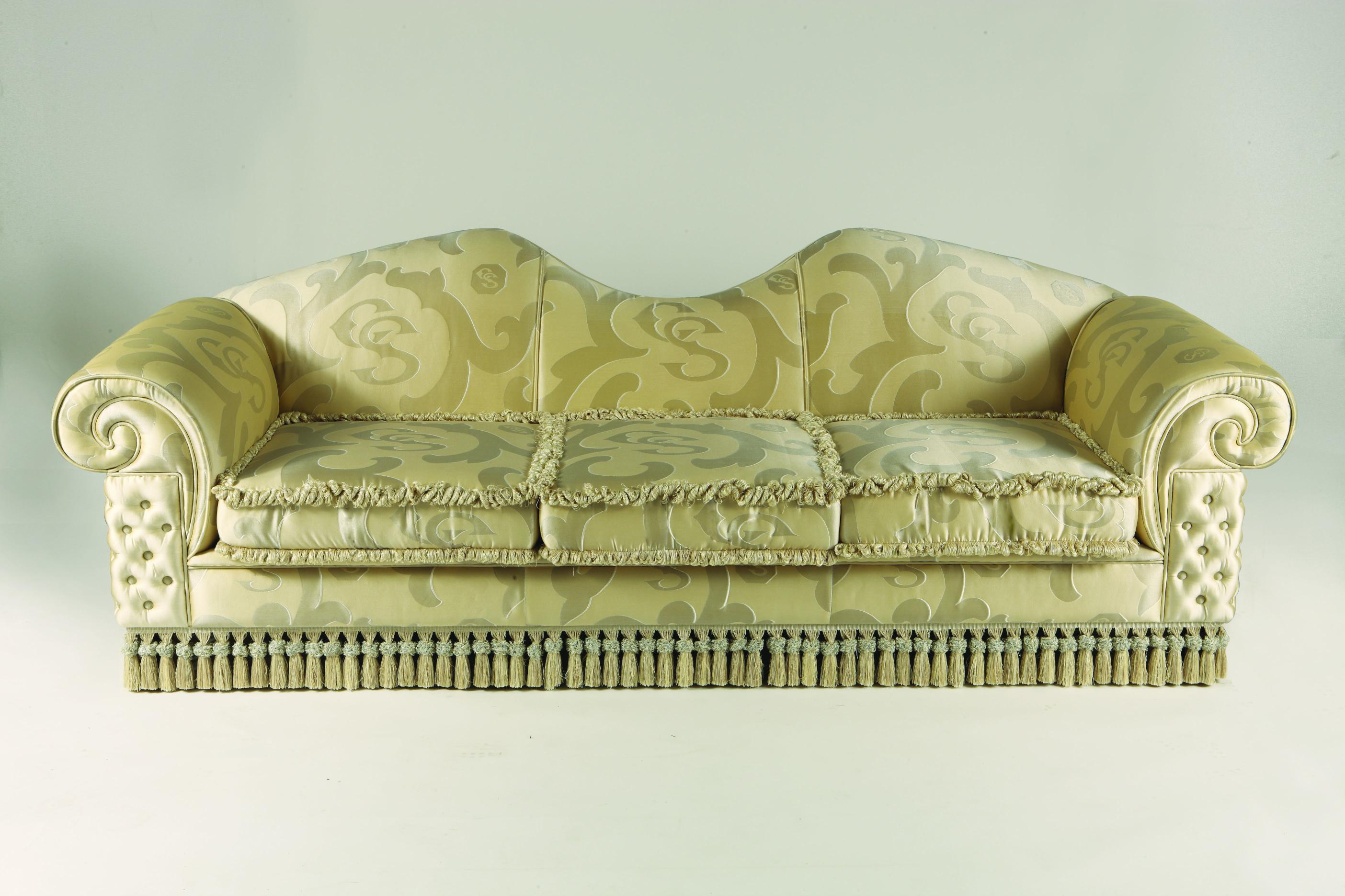 Three seater sofa S. I. P. ARR 09 from Italian manufacturer Colombo Stile. Model for the living room in the style of Louis XVI. The frame is natural wood. Upholstery - textiles. Colours in stock.