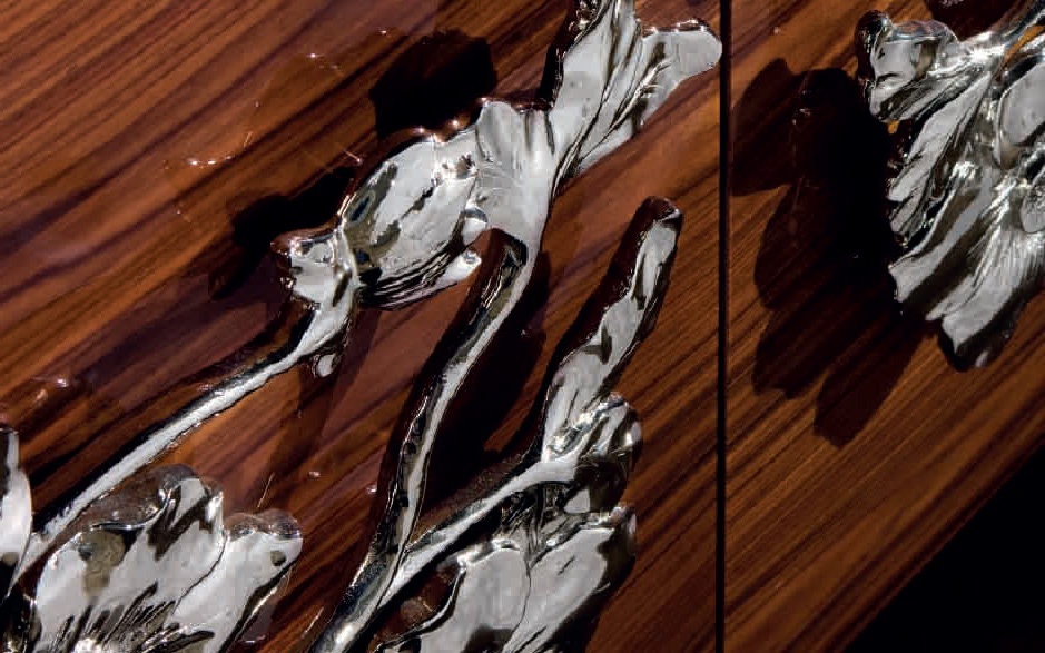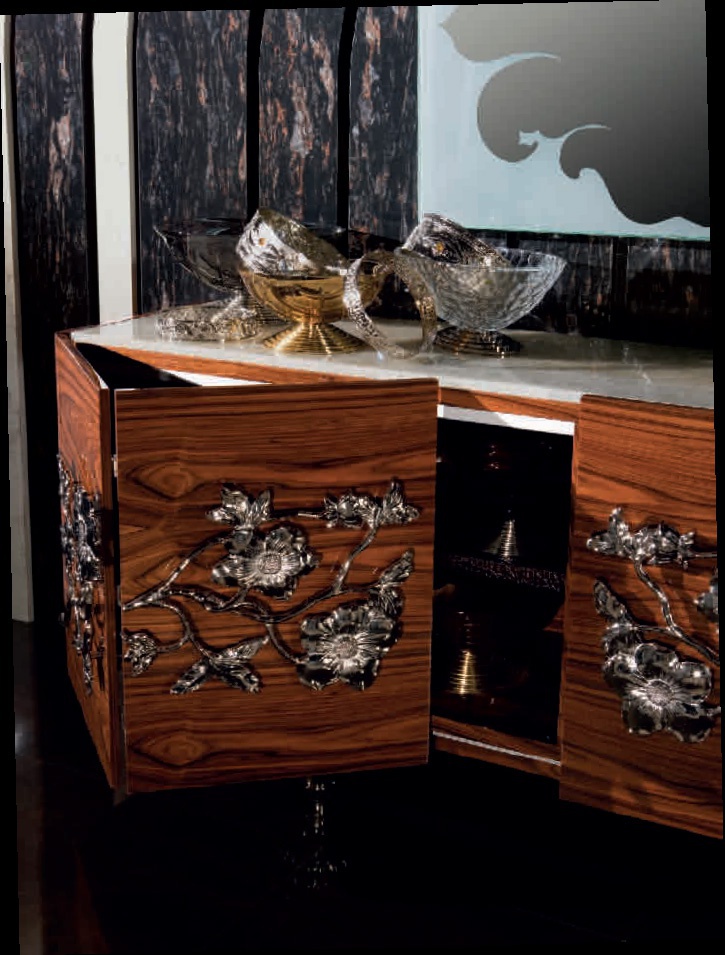 Buffet Flower from Italian manufacturer of design furniture JC Passion, made in the style of art Deco. Collection Of Pearl. The frame is made of laminated timber. Legs and decorative elements in brass, finishing by the customer. Colours in stock.