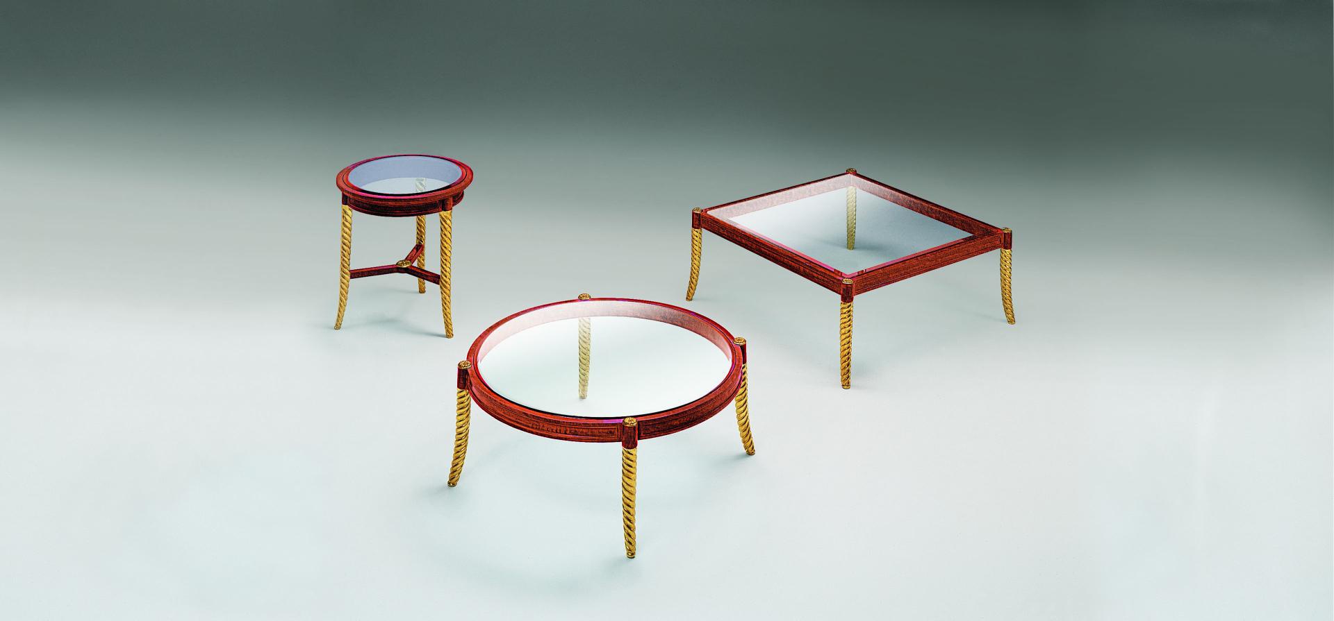 Coffee table S. I. P. ARR 09 from Italian manufacturer Colombo Stile. The frame is natural wood. Worktop - glass. Decorative elements of handwork. Colours in stock.