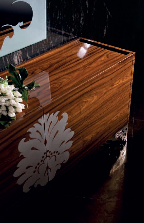 A snack bar Damasco from the Italian manufacturer of design furniture JC Passion. Model of the collection Pearl in the style of art Deco. The body is made of solid wood rosewood. Legs Nickel-plated steel, laser perforation, finishing on client's request. Colours in stock.