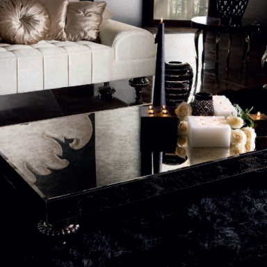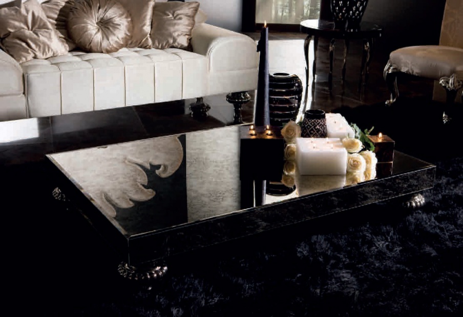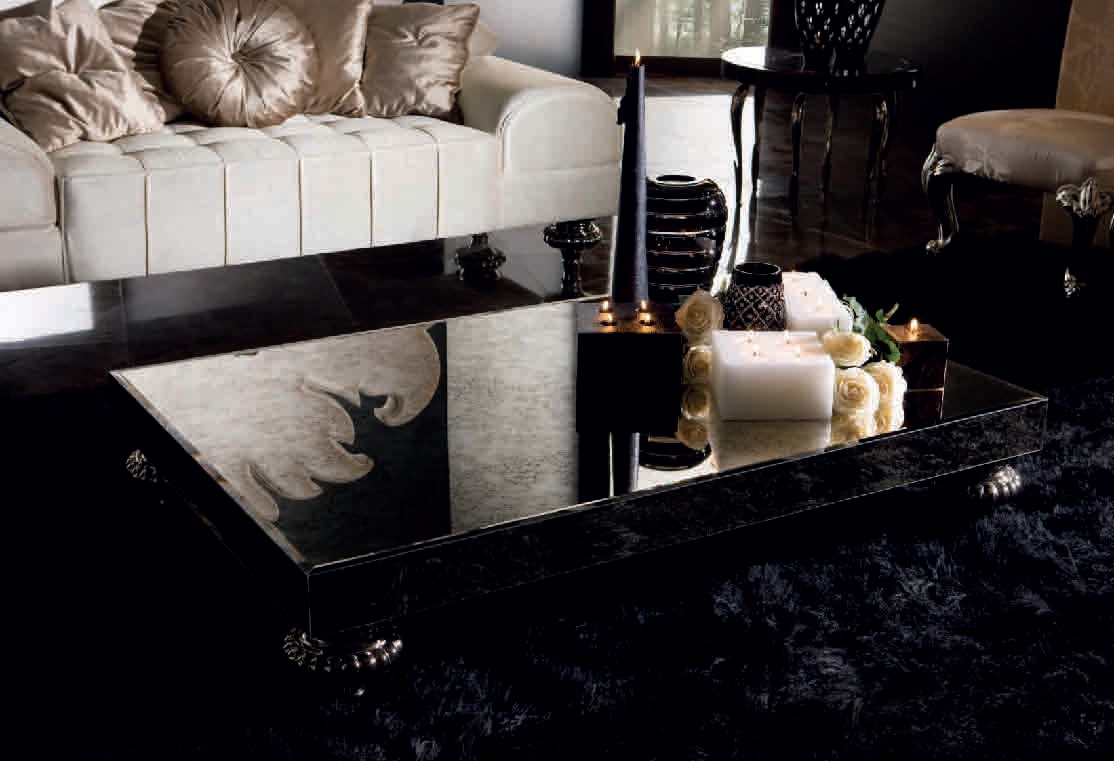 Wilson coffee table from the Italian manufacturer of design furniture JC Passion. Model of the collection Pearl in the style of art Deco. Table top made of solid wood and finished in mirror surface. Legs Nickel-plated brass, finish to client's request. Colours in stock. The perfect solution for your living room.
