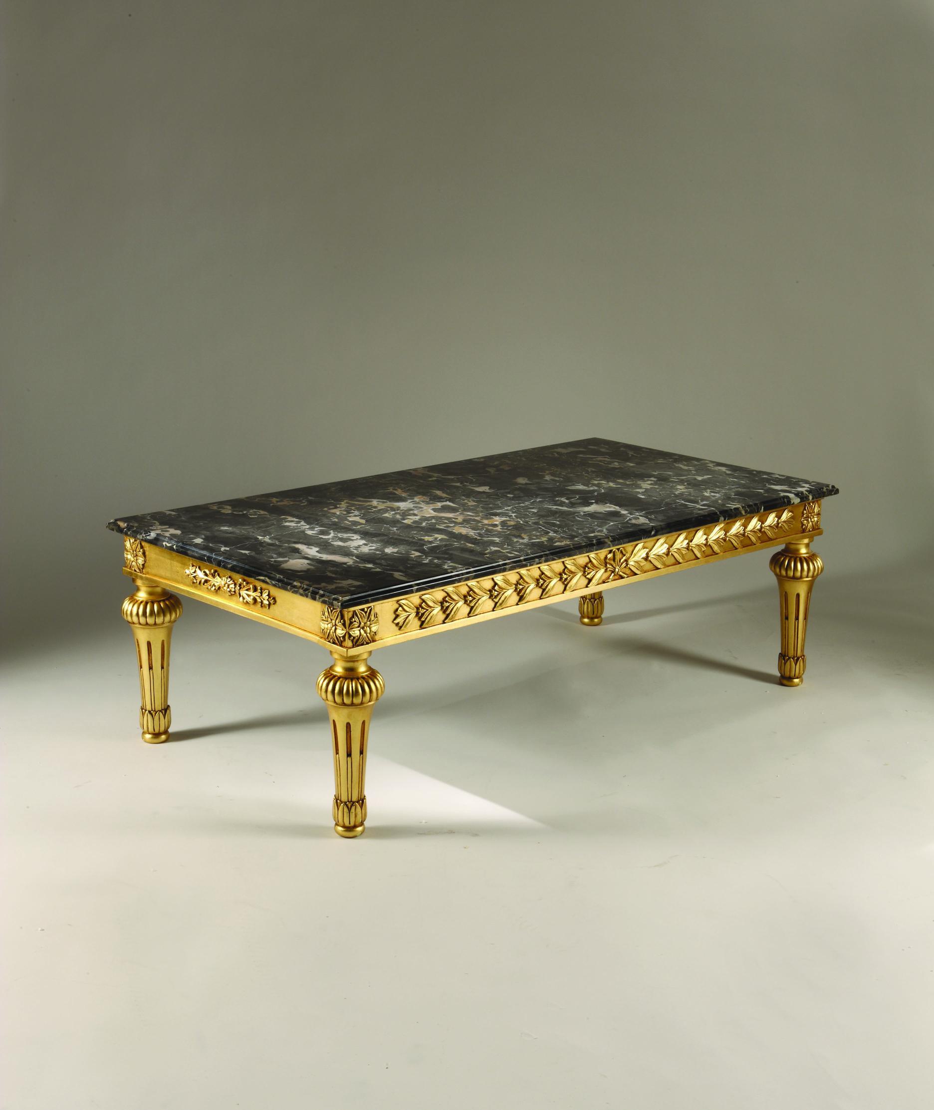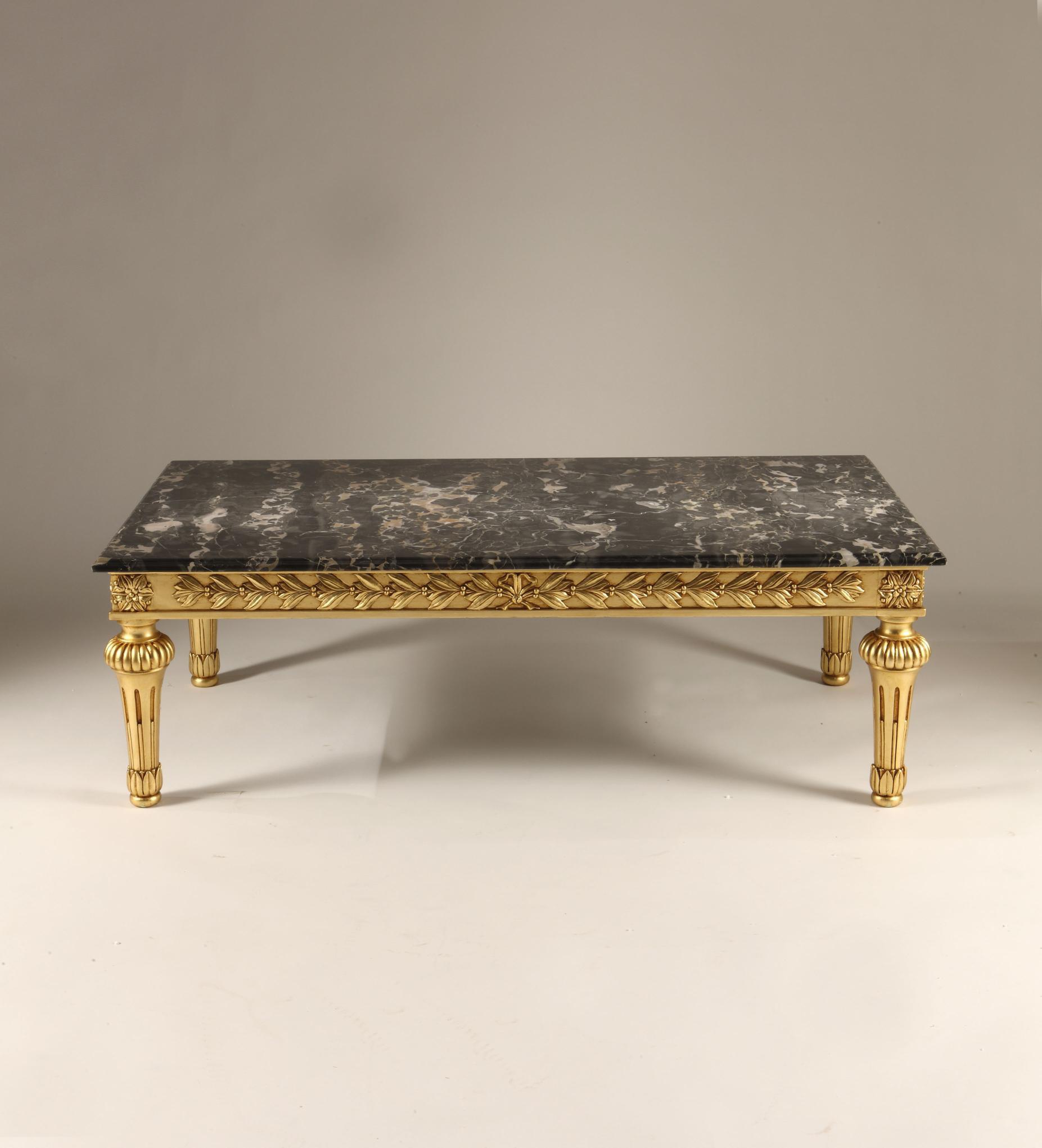 Coffee table with frame in natural wood S. I. P. ARR 09, Colombo Stile. Finishing - gilding. Countertop - marble. Decorative elements of handwork. The model is made in classic style. Colours in stock.