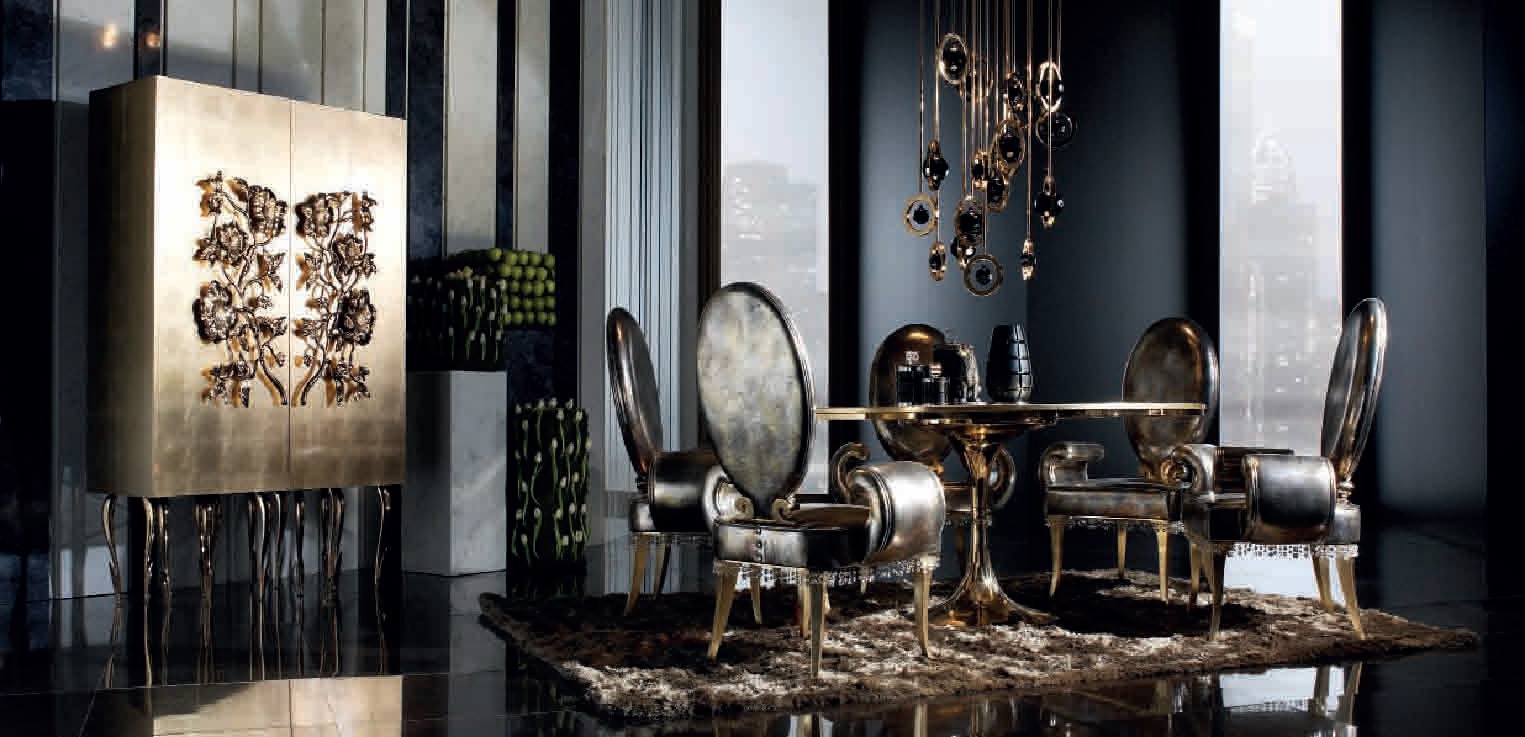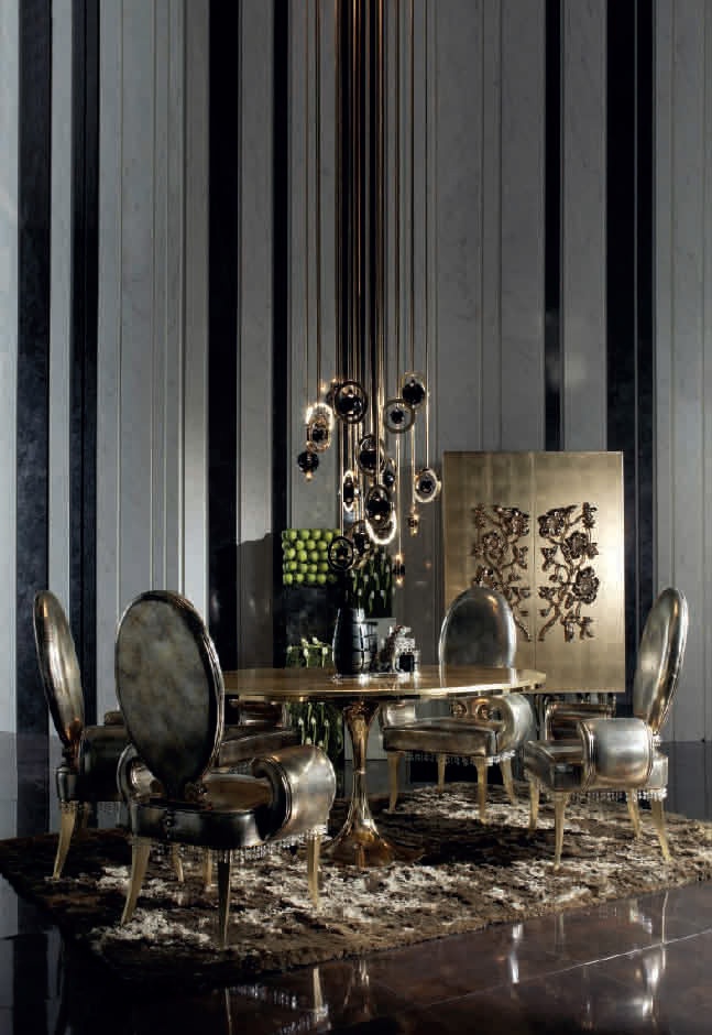 Dining table Chandelier by Italian manufacturer of designer furniture JC Passion, in the art Deco style. Collection Of Pearl. The structure of the table is made from Nickel-plated steel, table top from solid wood, finish - gold leaf. Colours in stock. Excellent solution for living or dining room in style of art Deco.