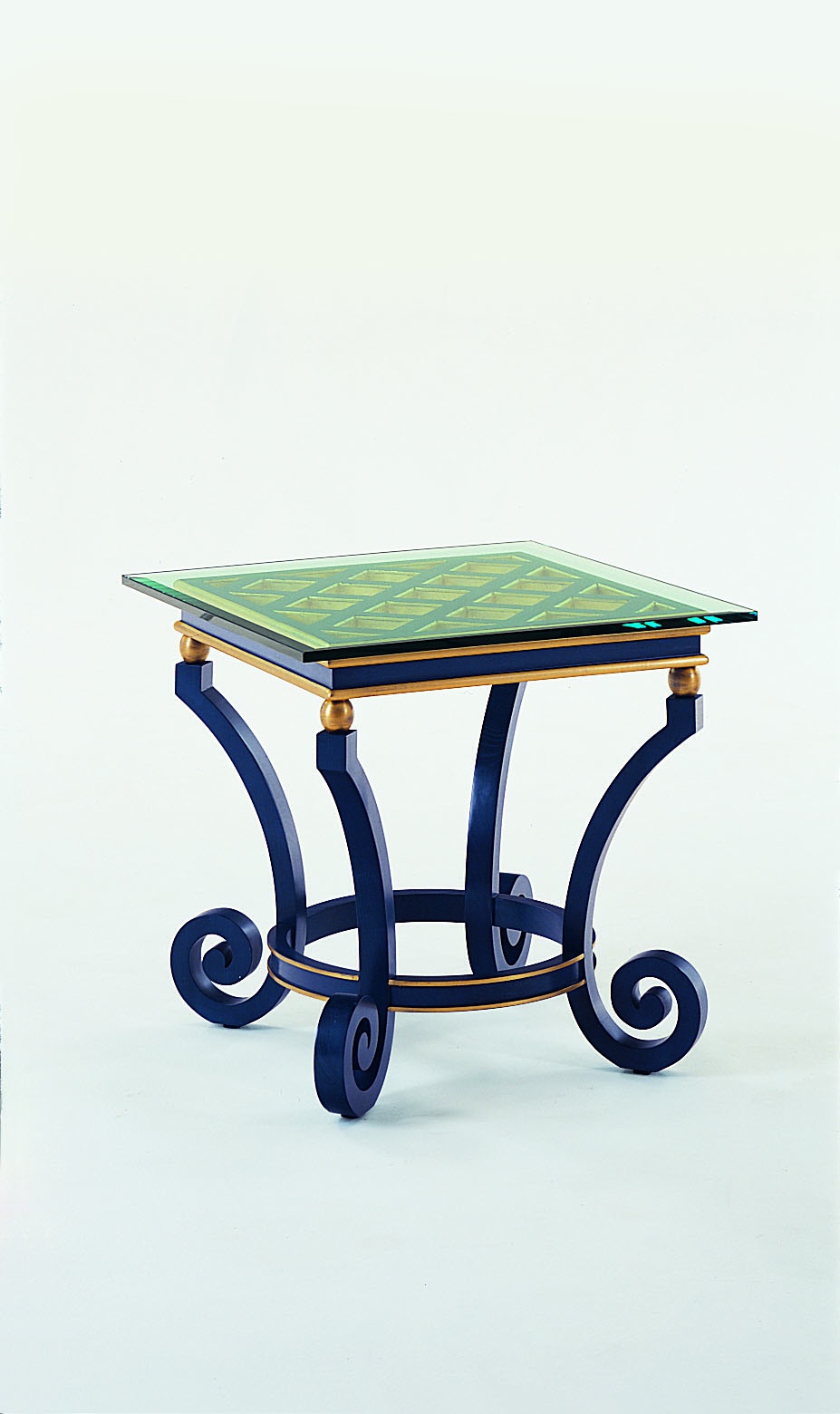 Coffee table S. I. P. ARR 09 from Italian manufacturer Colombo Stile. The frame is natural wood. Worktop - glass. Finish - lacquer, gilding. Decorative elements of handwork. Colours in stock.